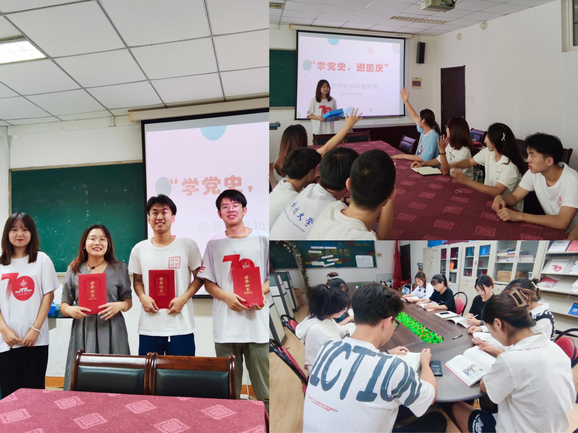 组织“庆祖国华诞,展经管风采”党史学习教育及“颂歌献祖国、礼赞新时代”红色经典诵读,分别从《党章中的党史》《颂党史、悟初心》《百年党史的伟大精神》《贯彻学习2021年习近平总书记在清华大学考察时讲话精神》四个专题纵深学习,对党史做到了“宣”与“讲”的联动,“理论”与“实践”的结合,进一步推进党史学习教育走深走实。