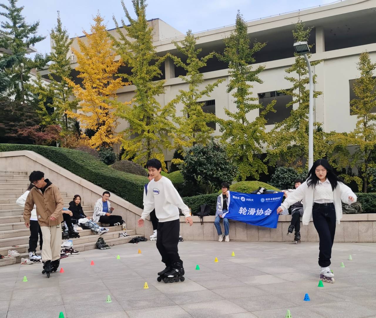 轮滑协会于11月9日下午在弘毅广场举行“轮转青春”速桩比赛。本次比赛由协会负责人李宛育同学筹备组织,比赛形式包括速桩组,刹停组,参赛人员覆盖各年级喜爱轮滑运动学生以及2021级轮滑协会成员。赛前,协会组织协会成员观看了由校轮滑协会表演的花样表演,随后进行趣味比赛以及热身活动。