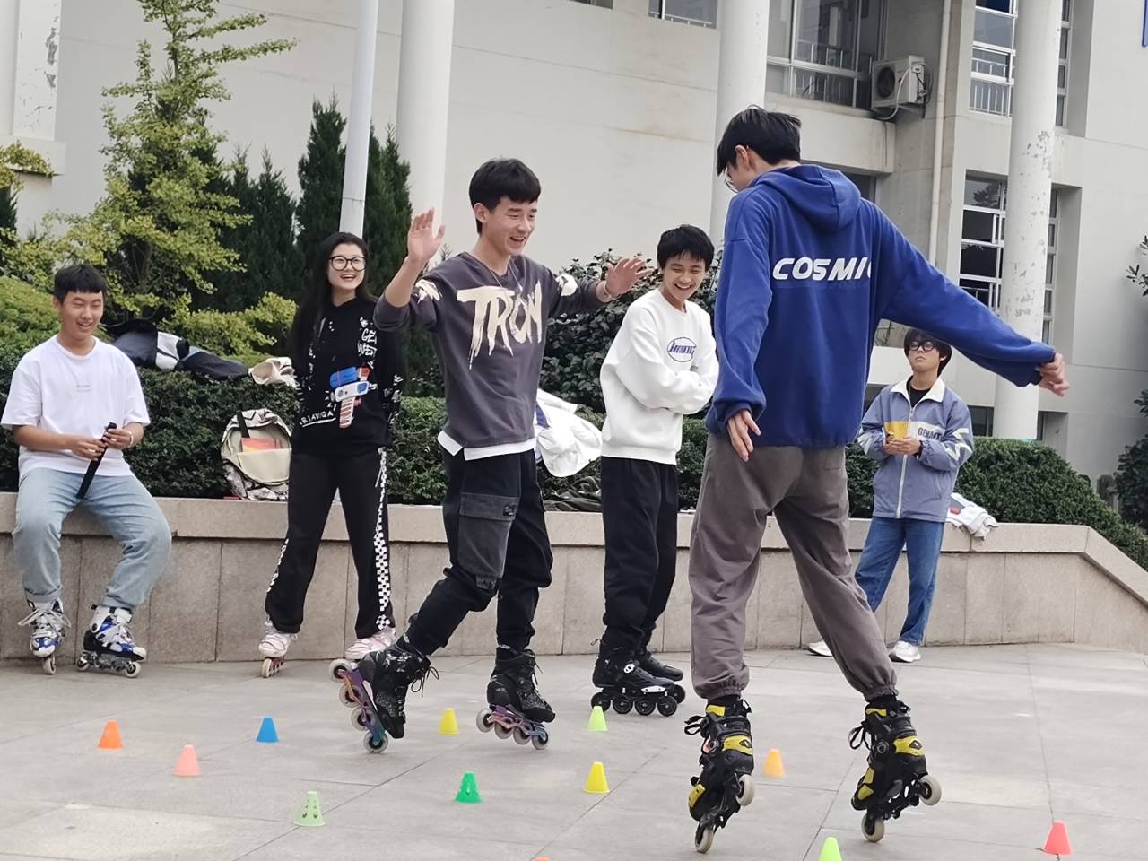 据悉,轮滑协会采取师徒制度,一对一零基础教学,兼顾平地花式绕桩、平地花式刹停以及轮舞等花式轮滑项目,轮滑协会以“永不放弃”为理念,每周二下午和晚间时间在弘毅广场平台组织训练。协会成员通过轮滑运动,提升身体素质,收获友谊共同成长,让青春平地生花!