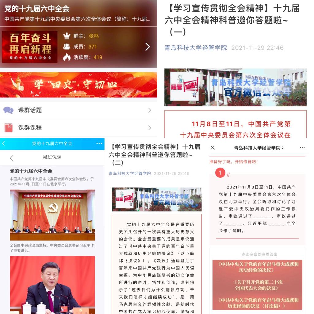 还通过建立学习强国班级群,充分利用强国教育资源,引导学生深入交流研讨,在交流中加深对十九届六中全会精神的理解。