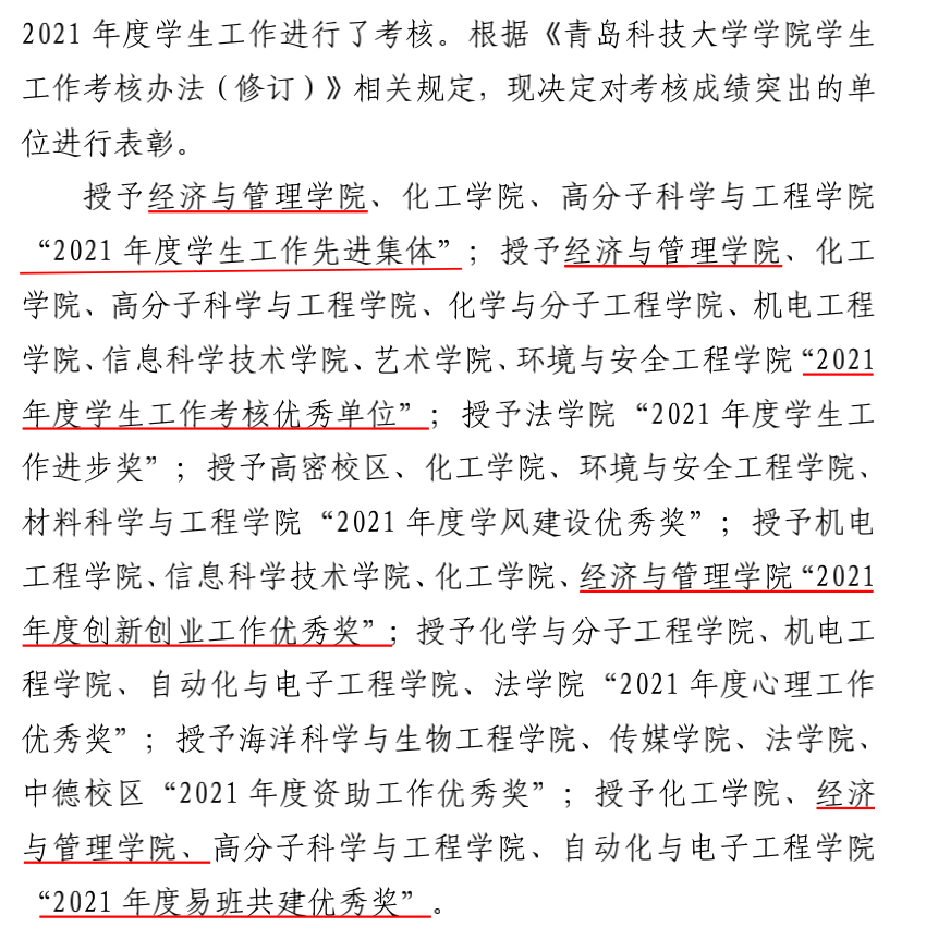 近日,青岛科技大学2021年度学生工作考核结果公布,经学校评价、无码欧美
