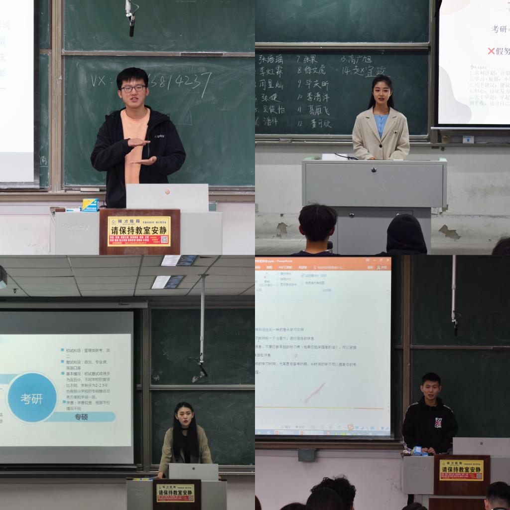 各专业2018级优秀学生代表生动形象地讲述自己的心路历程,依次从择校思路、复习计划、资料选择等方面分享了自己的经验方法及心得体会,对考研过程中可能遇到的多种情况进行了详细的分析,并鼓励2019级学生要坚定梦想,不懈努力,激发不言放弃的昂扬斗志。2019级学生纷纷表示,“通过此次交流,对考研有了更深入的了解,对学业有了更清晰的规划,明确了未来努力的方向。”