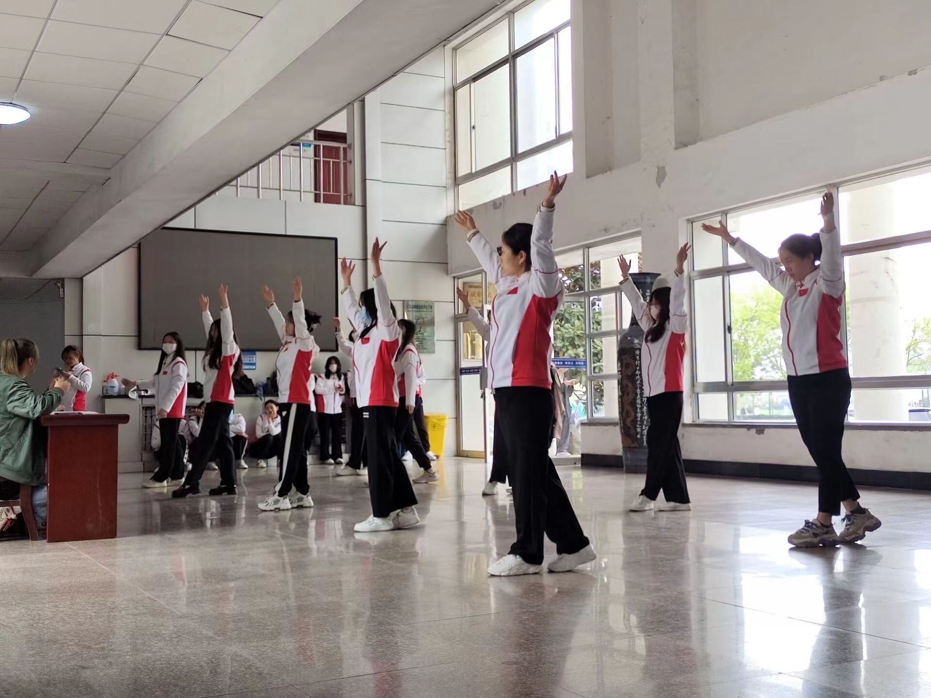比赛前,各专业同学根据专业教练指导,认真练习,进一步规范动作要领。比赛过程中,队员们动作整齐划一,跟随律动起舞,充分展示了经管学子蓬勃昂扬的精神风貌。
