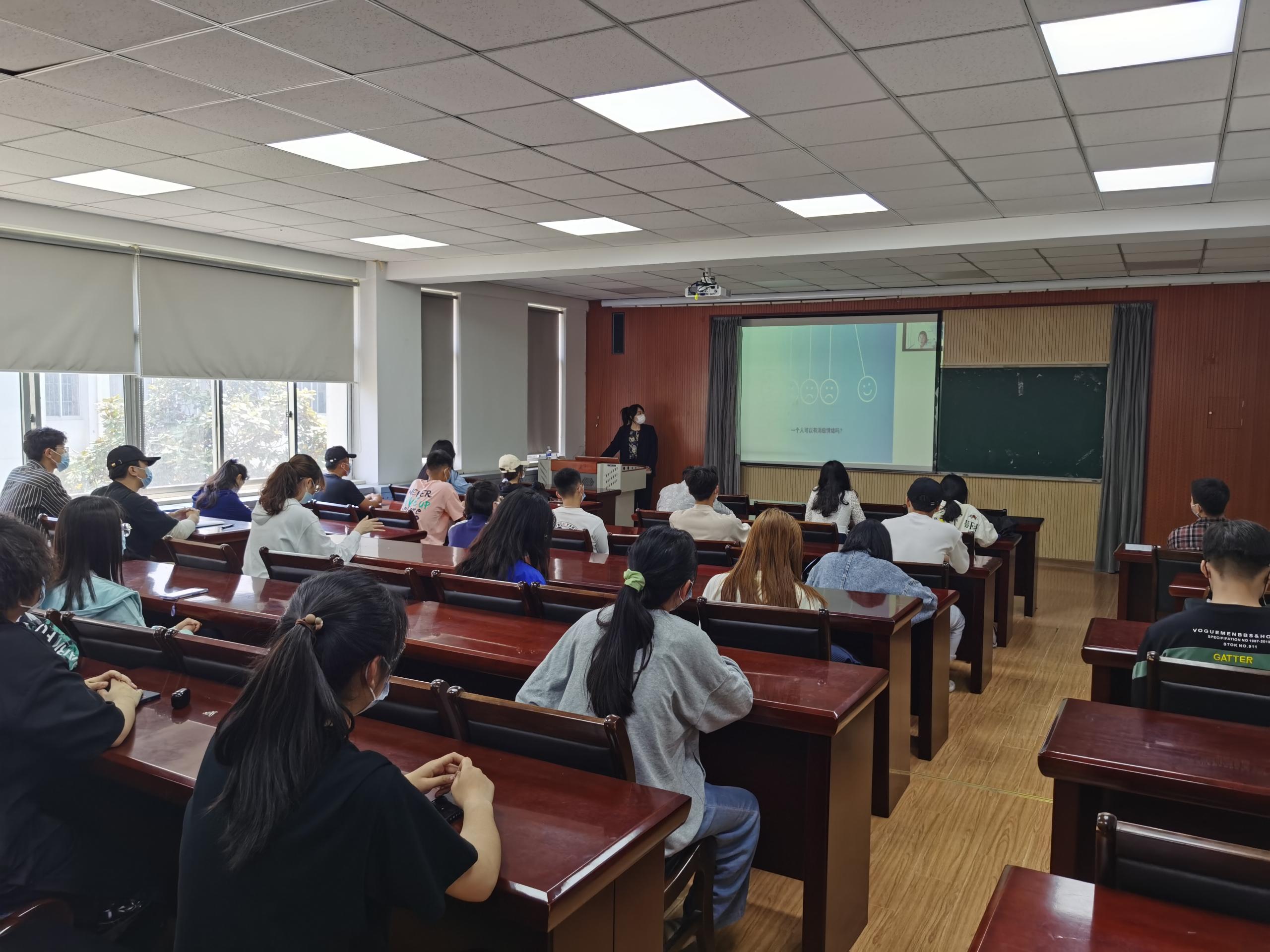 会议最后,辅导员带领全体学生在按照隔座入座、戴口罩的疫情防控要求基础上,集中观看了讲座直播以及重要专题讲座回放。