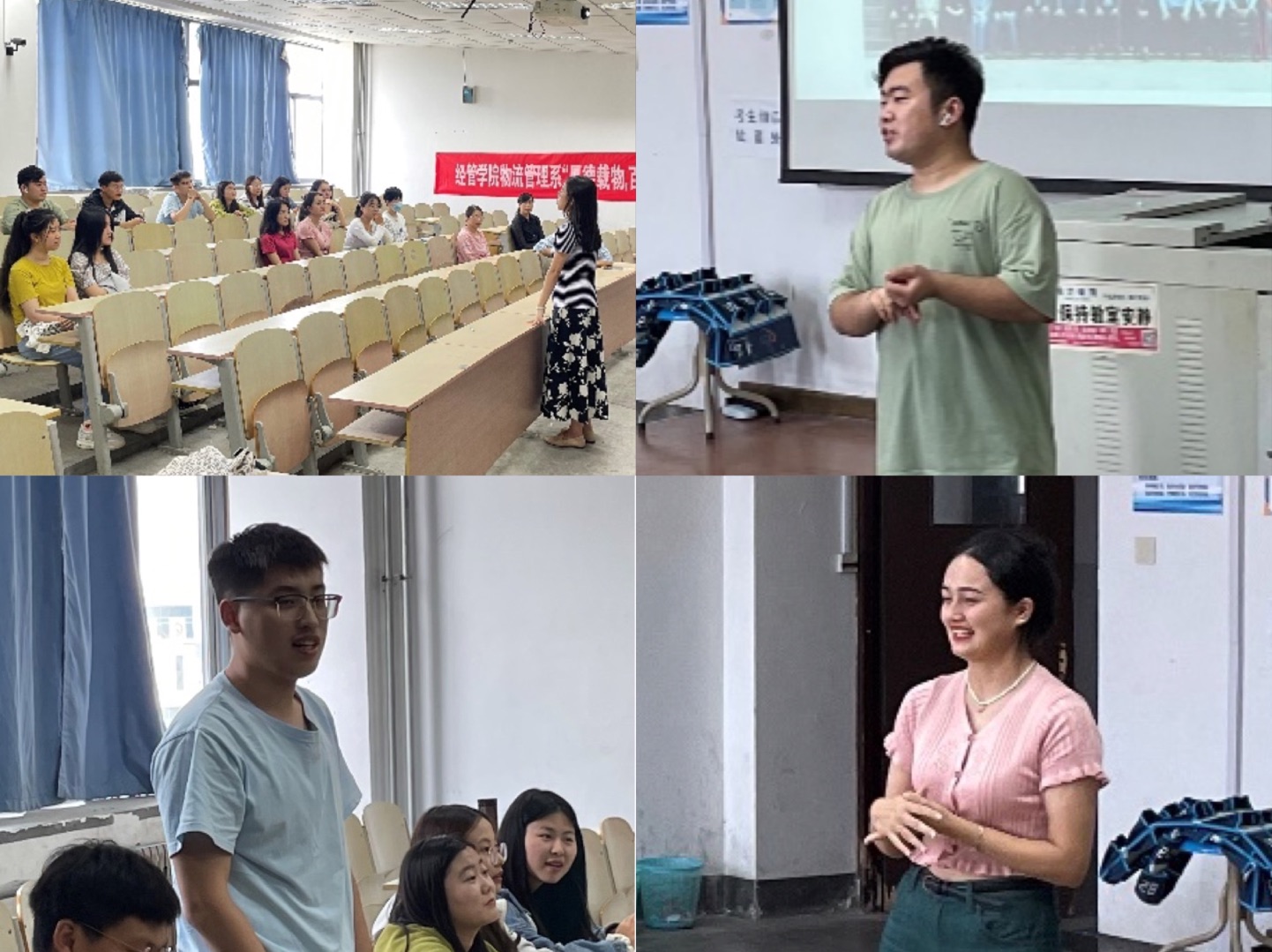 活动伊始,同学们在黑板上签名留念,留下自己的青春回忆。大家一起回顾了大学四年的点点滴滴,索琪对全体毕业生顺利完成学业、即将启航人生新程表示祝贺。随后,辅导员张晓帆鼓励全体毕业生传承科大家风,发扬橡胶品格,立足本职岗位,绽放青春风采。张志耀和王艳婷代表物流管理系全体教师为毕业生送上临别赠言和未来期许,希望大家以力争上游的进取之姿,建功立业的鸿鹄之志,顺应时代潮流,书写人生篇章。刘庆、帕孜拉、贾俊荣等同学站上讲台,诉说着对母校的不舍,对老师的感谢和对同窗的祝福。同时,他们也从课程设置、专业能力培养、实习实践等方面提出了专业发展建议。同学们纷纷表示在今后的人生道路上将不负母校期望,不忘师长嘱托,初心不改,砥砺前行。
