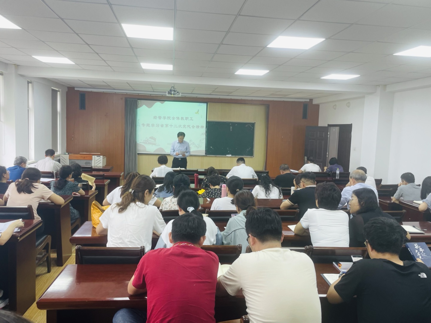 于经管楼419室召开山东省第十二次党代会精神专题学习会暨全体教职工大会,无码欧美