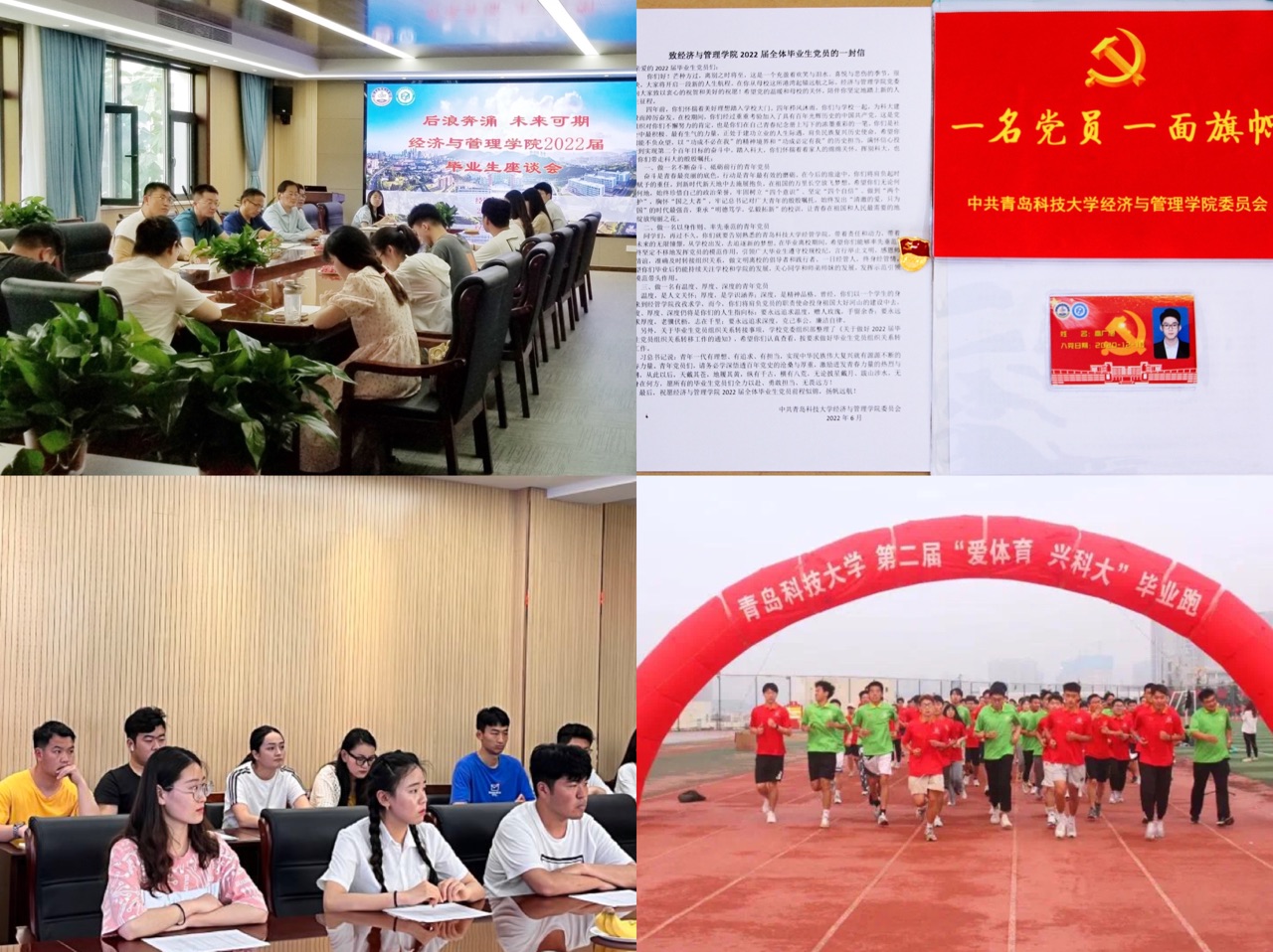 党委致2022届毕业生党员的一封信》,党员身份证和一枚党徽,希望广大毕业生党员不忘入党初心,牢记一名党员就是一面旗帜,做理想信念坚定的马克思主义者、做追梦圆梦路上的奋斗者。同时毕业生各团支部通过多种形式开展毕业生主题团日活动,为同学们提供一个畅所欲言的交流平台,抒发自己在毕业时刻的所思所感所想,让师生之间充分交流,表达依依惜别之情的同时畅谈未来远大理想。