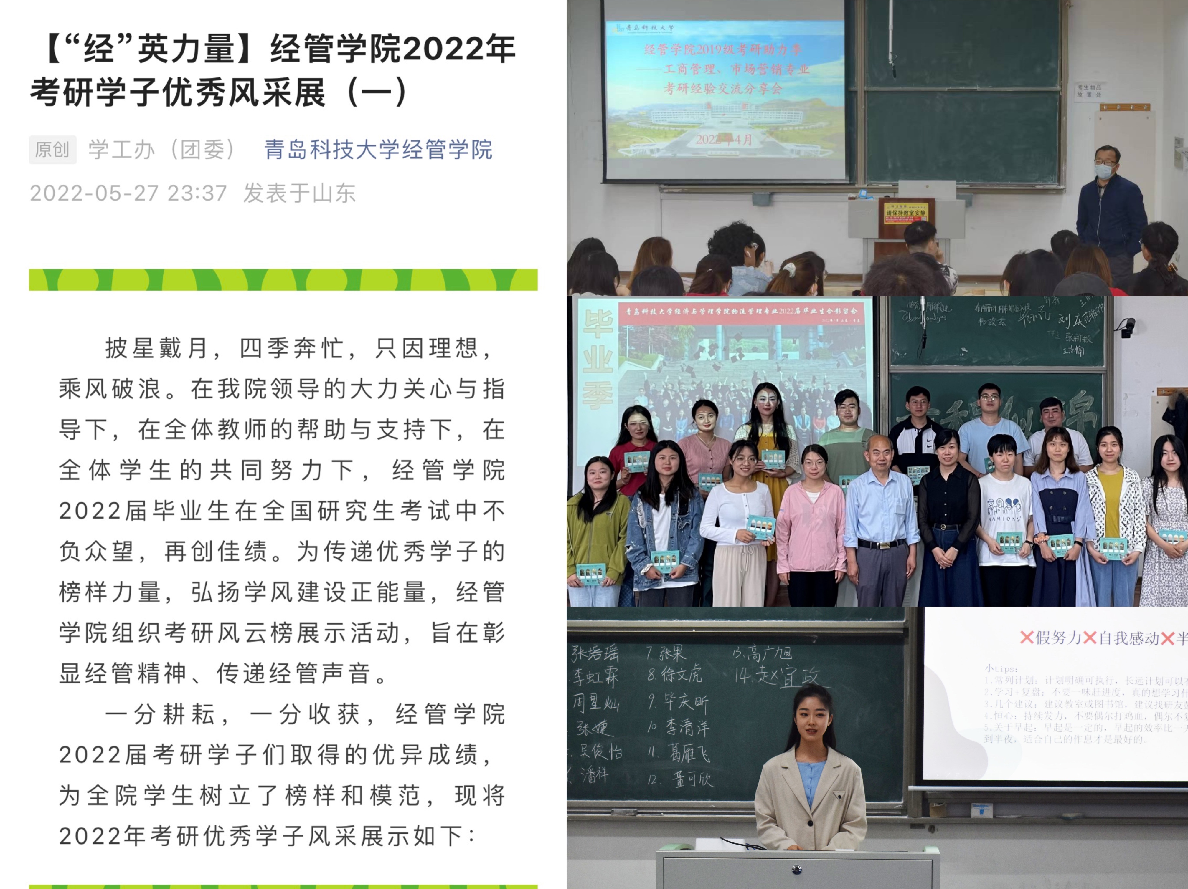 通过官方微信公众号对2022届优秀毕业生进行巡展活动,挖掘展示各方面有突出成绩和影响力的学生典型事迹,充分发挥典型示范作用。在全体学生中营造乐学好学、敬业奉献、向上向善的风气。