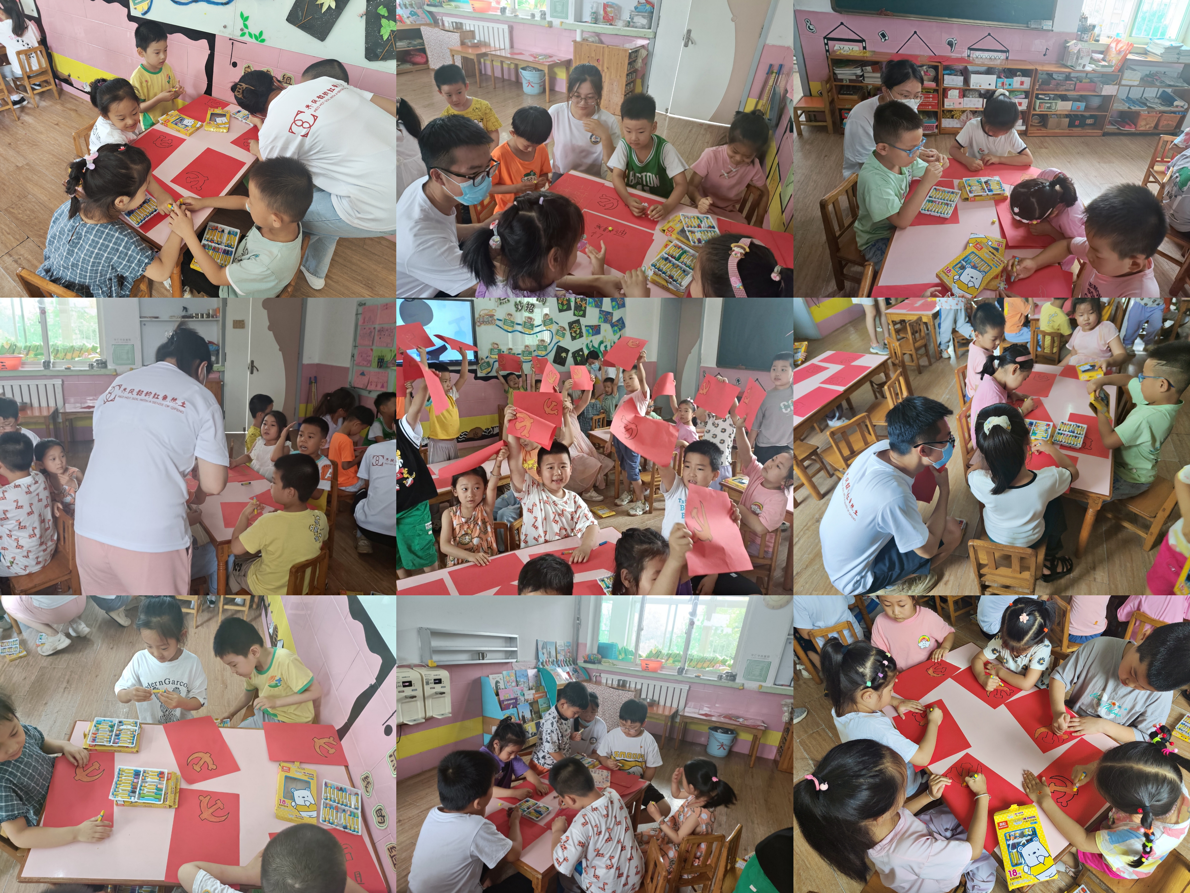 爱国教育的底色是红色,爱国主义教育深深根植于每名中国人的心中。为进一步强化爱党爱国教育,实践队员带领学生们在红色A4纸上绘制党旗党徽和五星红旗,并由李晓钰讲解党徽的构成以及内涵。通过本次活动,让学生们认识党旗,爱护党旗,爱国主义的种子进一步深深根植于孩童的心中。