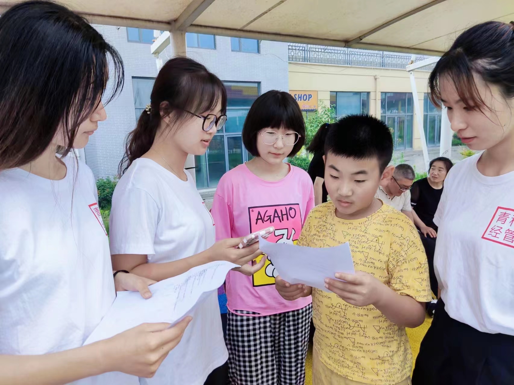 正值天真烂漫的年纪,我们无不着迷于孩子们纯洁无瑕的笑脸。实践队员们与当地的孩子“打”成了一片,正是好学的年纪,以至于我们很想要听听他们稚嫩的普通话,并尽自己所能教他们说说普通话。他们积极配合,认真跟着学习,让我们仿佛看到了初入学堂的自己。“你说的真好呀,真棒!”这是队员们发自内心的赞叹,小孩学东西就是快,听一遍跟说一边,就能正确发音。听他说,课堂上老师也会用普通话与学生交流,这在潜移默化中也会影响到他们的。热情洋溢,积极乐观,聪明好学,这就是从他们身上折射出来的光芒。