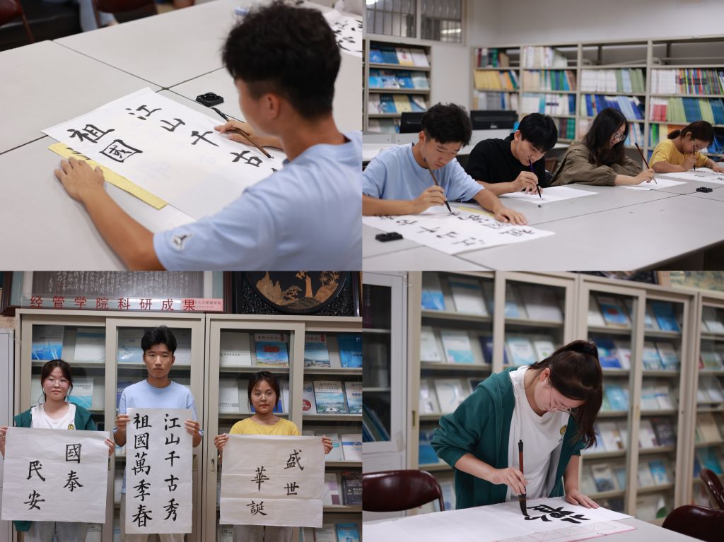 全体本科生、研究生征集书法作品,以笔墨共赞盛世华诞,以我心共书盛世华章。一横一竖,一撇一捺,顿下的是信念,回旋的是力量,勾勒的是当代青年对祖国母亲的无限热爱。经管学子们于书法的恢弘气势和雅致的艺术形式中厚植爱国情怀,担当青年使命,由内而外地表达自己对祖国繁荣昌盛的美好祝福。此次活动以爱国经典为着力点,以纸墨笔砚为载体,将全方位引导学子增强文化自信,筑牢传统文化之魂,凝聚青春力量礼赞祖国。
