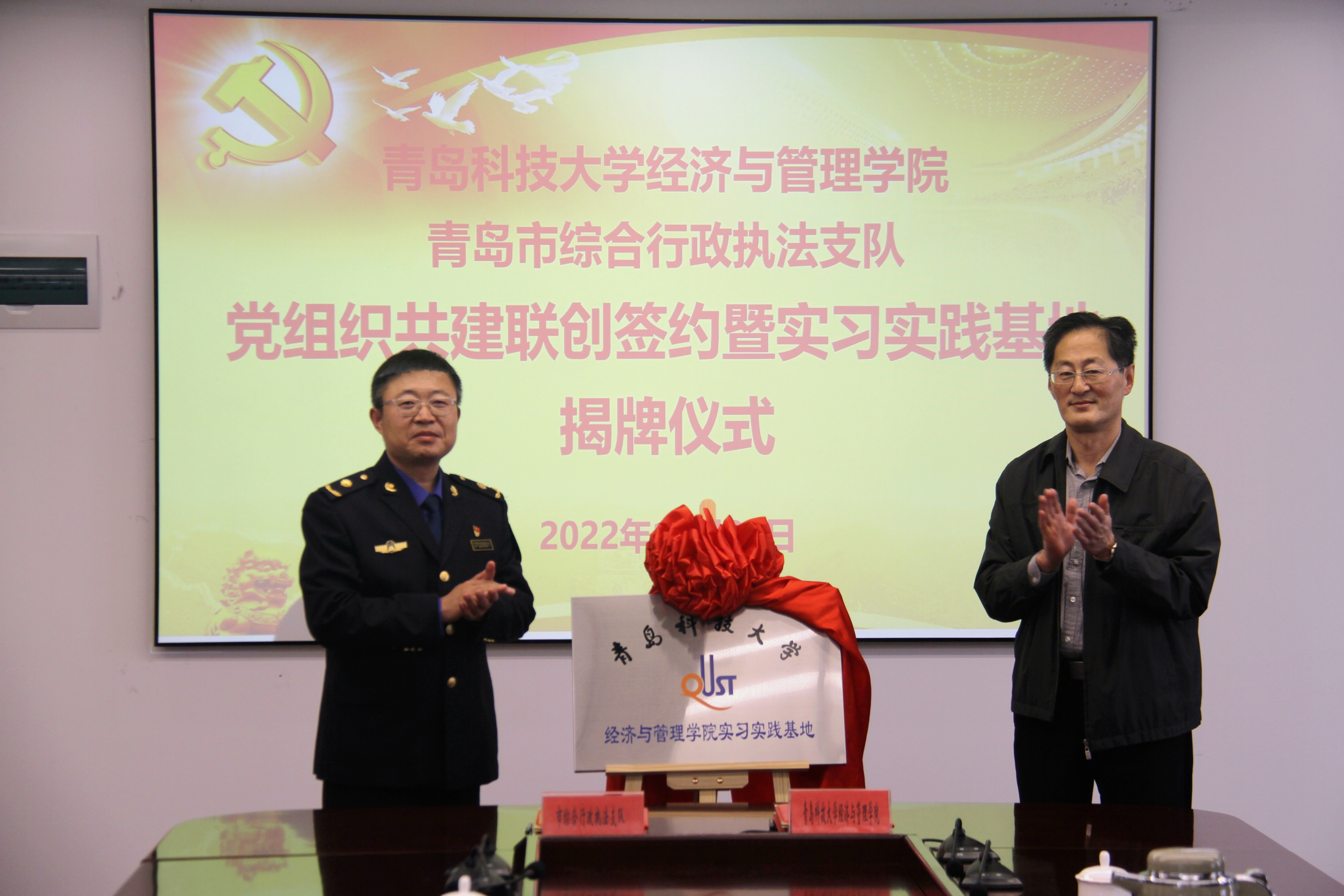 与青岛市综合行政执法支队举行党组织联创共建合作签约暨实习实践基地揭牌仪式。无码欧美