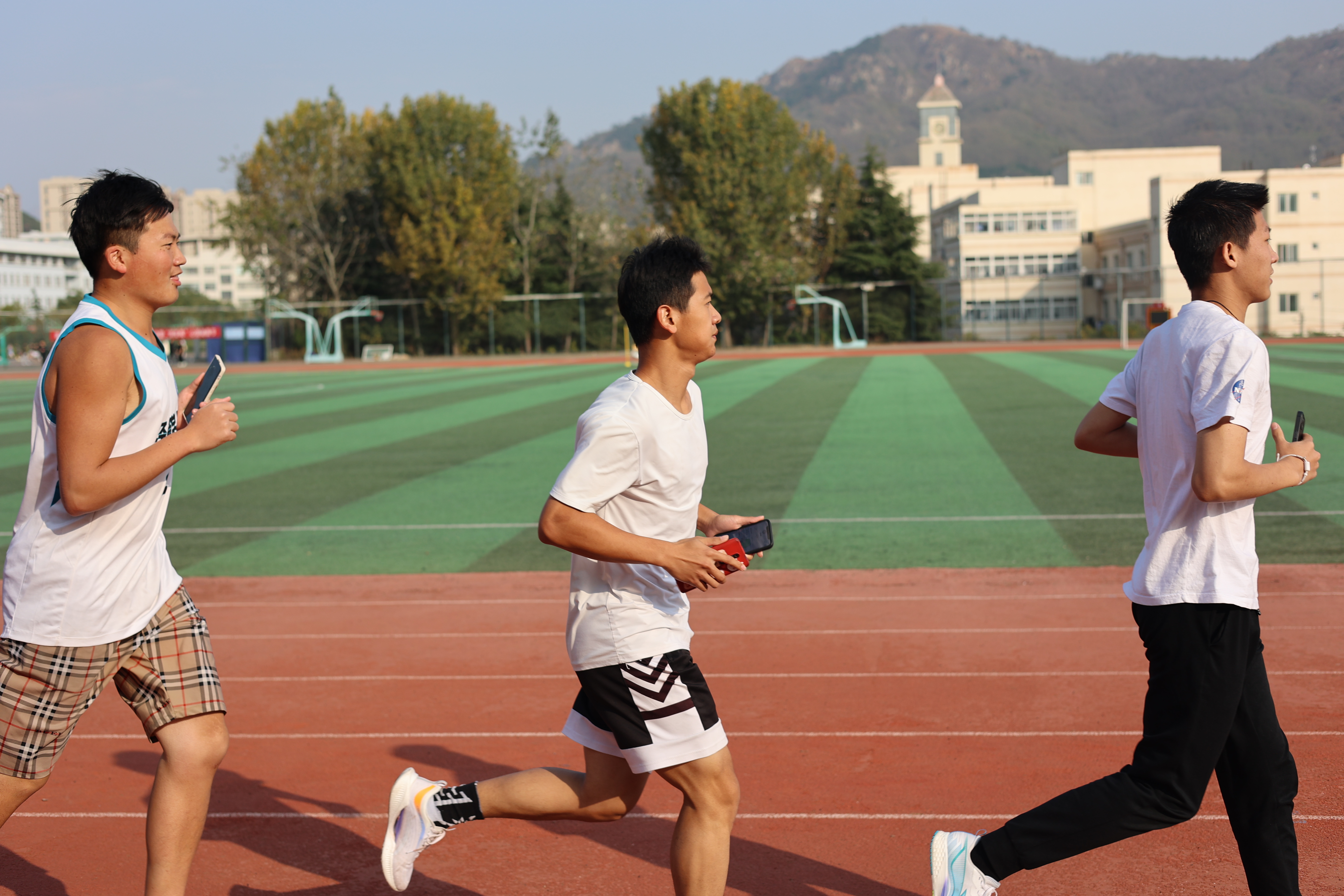 的越野队员正热血沸腾。他们先是慢跑五圈进行热身,接着便是日常的越野训练:压腿,踢腿,高抬腿,他们早已习惯;蛙跳,跑圈,追逐跑,他们无所畏惧;深蹲跳,波比跳,弓箭步,他们标准持久。在此之后便是争分夺秒的100米、200米、400米冲刺跑,同学们个个精神振奋,脚下呼呼生风,像离弦的箭一样向前飞奔。最终环节便是800米、1000米耐力跑,阳光照射着同学们的脸颊,映出汗水,肆意自由而急促的呼吸彰显出青春张力,这是同学们坚持不懈、奋力向前的真实写照。