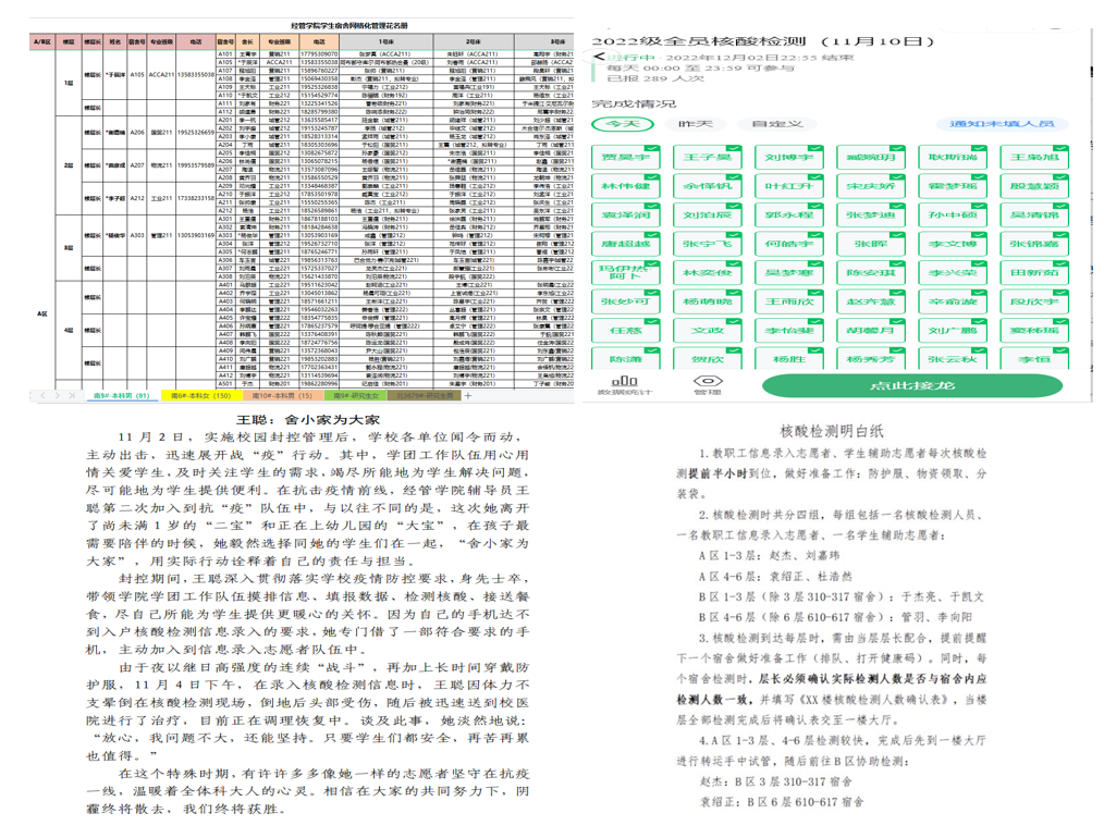 书记、院长及辅导员深入学生宿舍,了解学生的生活情况,完成学生一对一谈话及重点学生访谈工作,确保特殊时期安全稳定;各宿舍楼宇通过建立在线表格,及时调研、收集静默同学的各项需求,整理成任务清单,最快速度解决问题;静默管理解除后,无码欧美