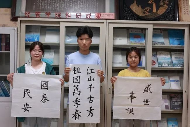 全体本科生、研究生征集书法作品,以笔墨共赞盛世华诞,以我心共书盛世华章。一横一竖,一撇一捺,顿下的是信念,回旋的是力量,勾勒的是当代青年对祖国母亲的无限热爱。经管学子们于书法的恢弘气势和雅致的艺术形式中厚植爱国情怀,担当青年使命,由内而外地表达自己对祖国繁荣昌盛的美好祝福。