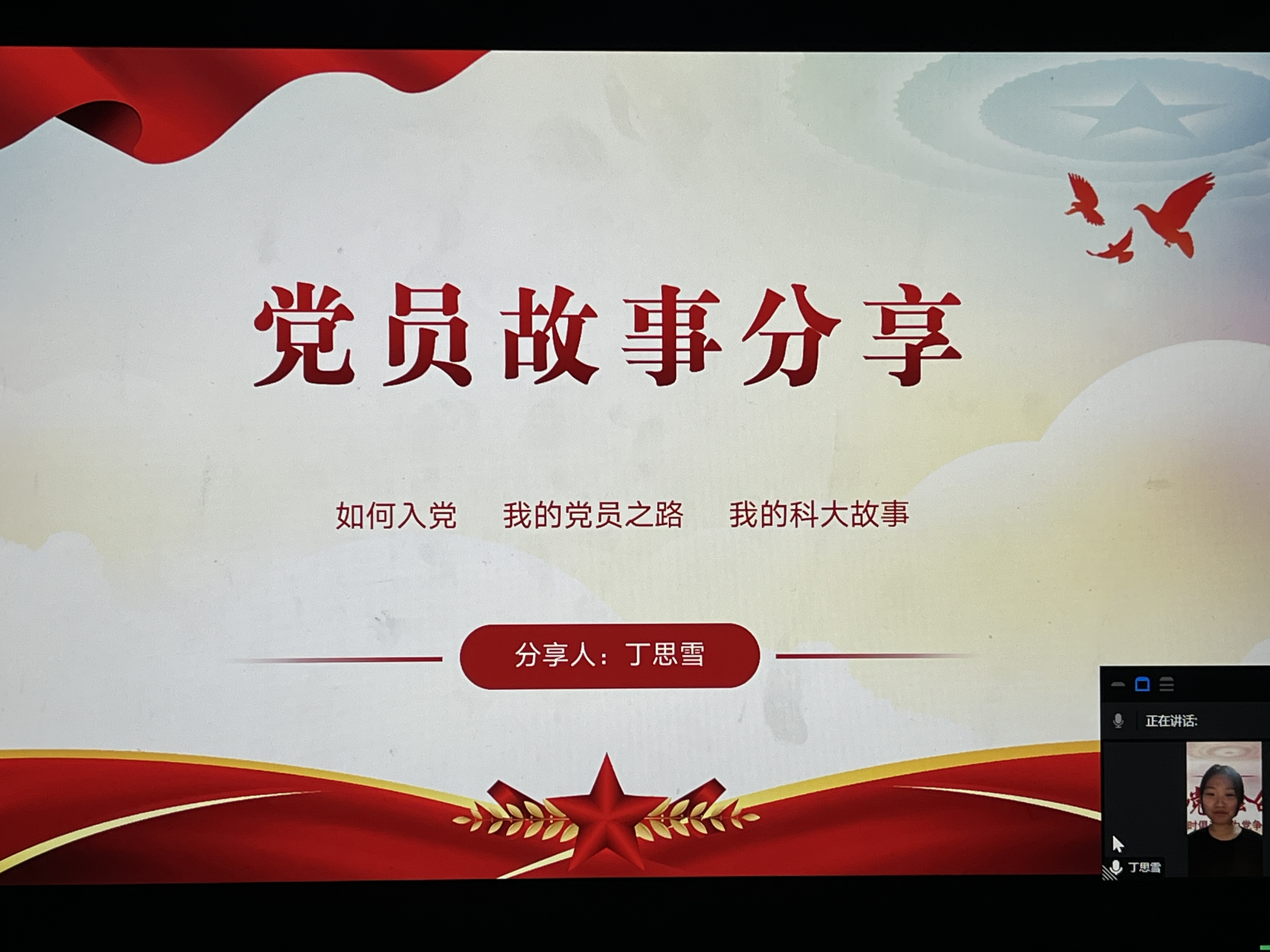 青年党员学生代表丁思雪同学进行自身党员故事分享。