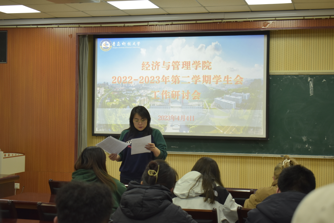 学生会在经管楼419召开第6周工作例会暨2022-2023学年第二学期学生会工作研讨会,会议由学生会指导老师付凯主持。