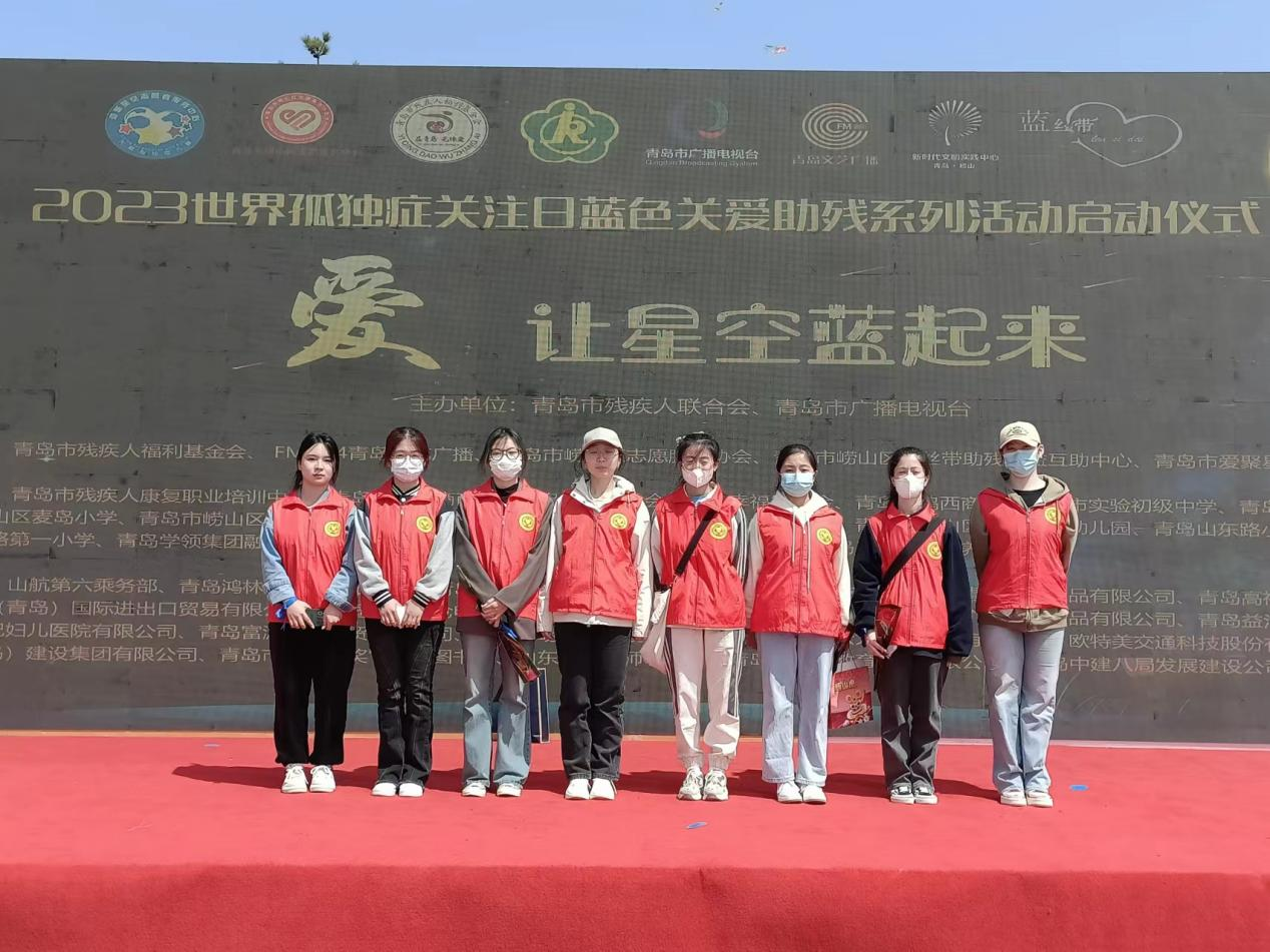 暖心愿爱心公益协会在崂山区石老人海水浴场城市客厅参与“爱让星空蓝起来”2023年世界孤独症日蓝色关爱助残系列项目启动仪式,活动由指导老师付凯带队。