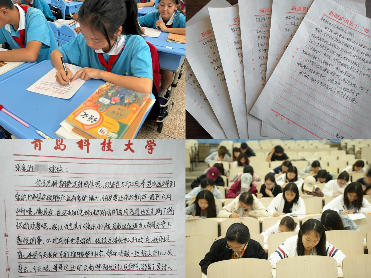 组织青年学生与兵团十二师中学的同学结对成为一对一笔友,收集当地学生的信件,为远在新疆的同学们逐一回信。一封封书信承载着热切的期盼,一张张信笺饱含着满心的祝福,从东到西数千里,邮递到素未谋面的“伙伴”手中,为他们筑起爱的桥梁,助力孩子们心灵幸福成长。