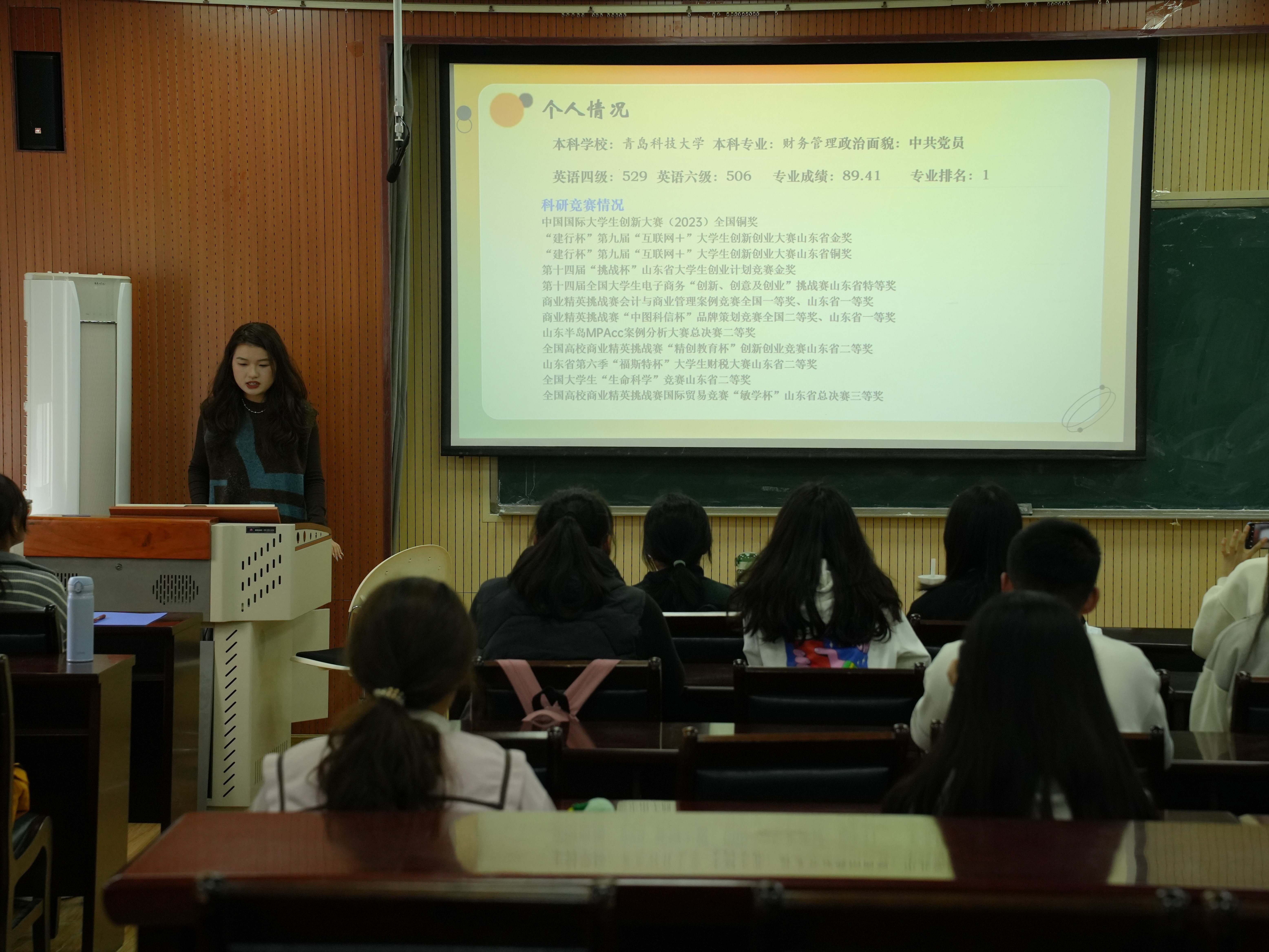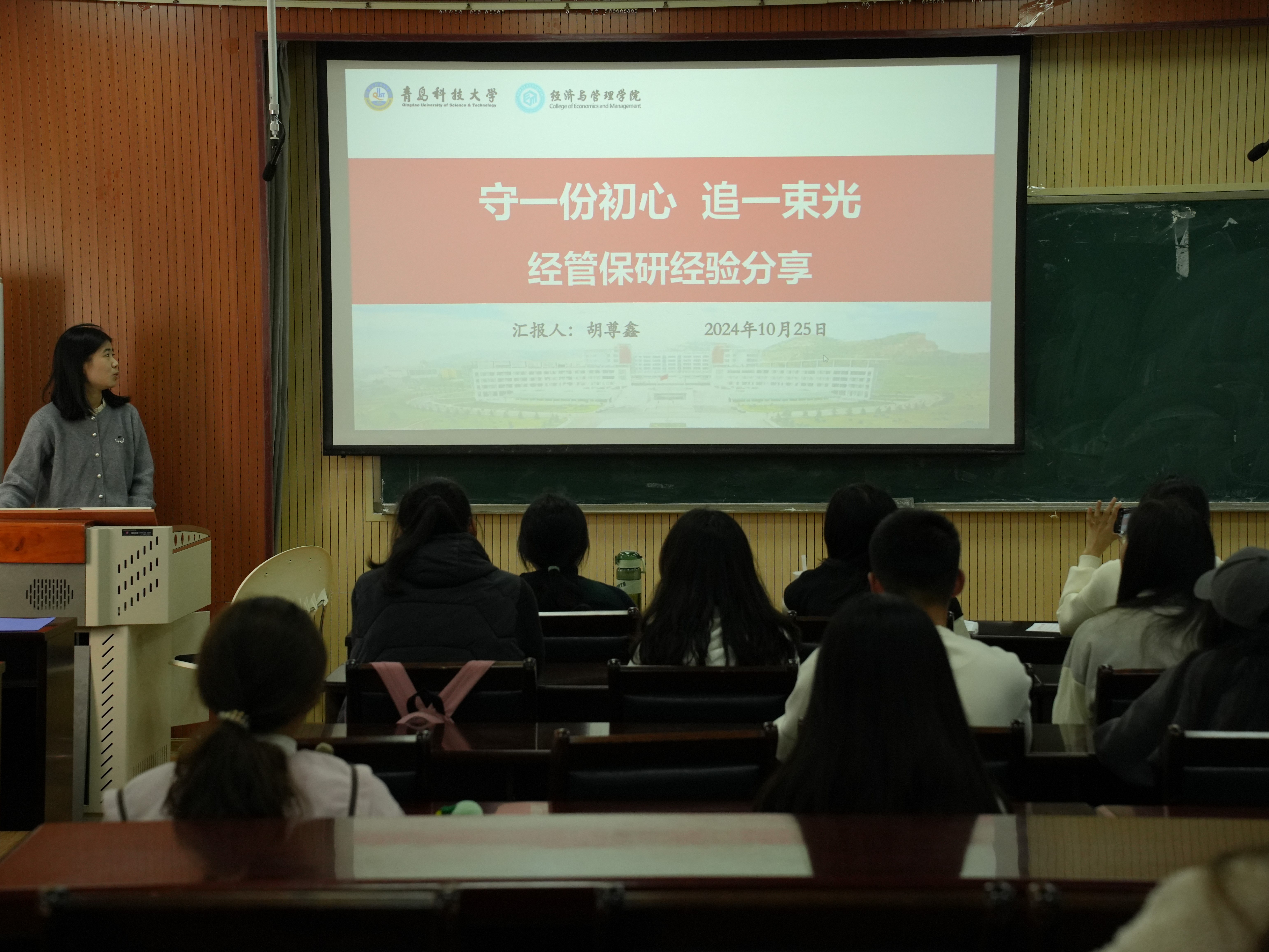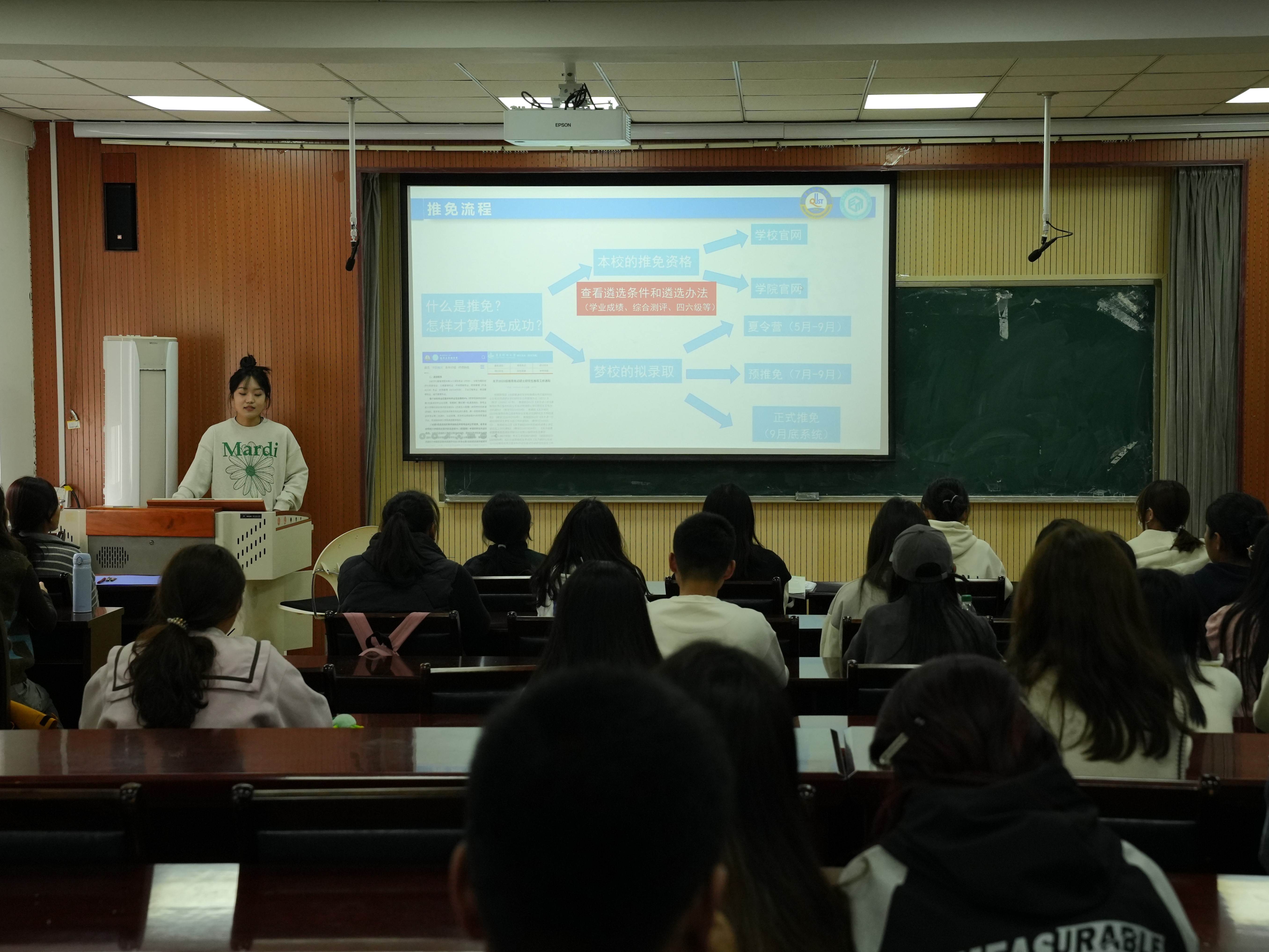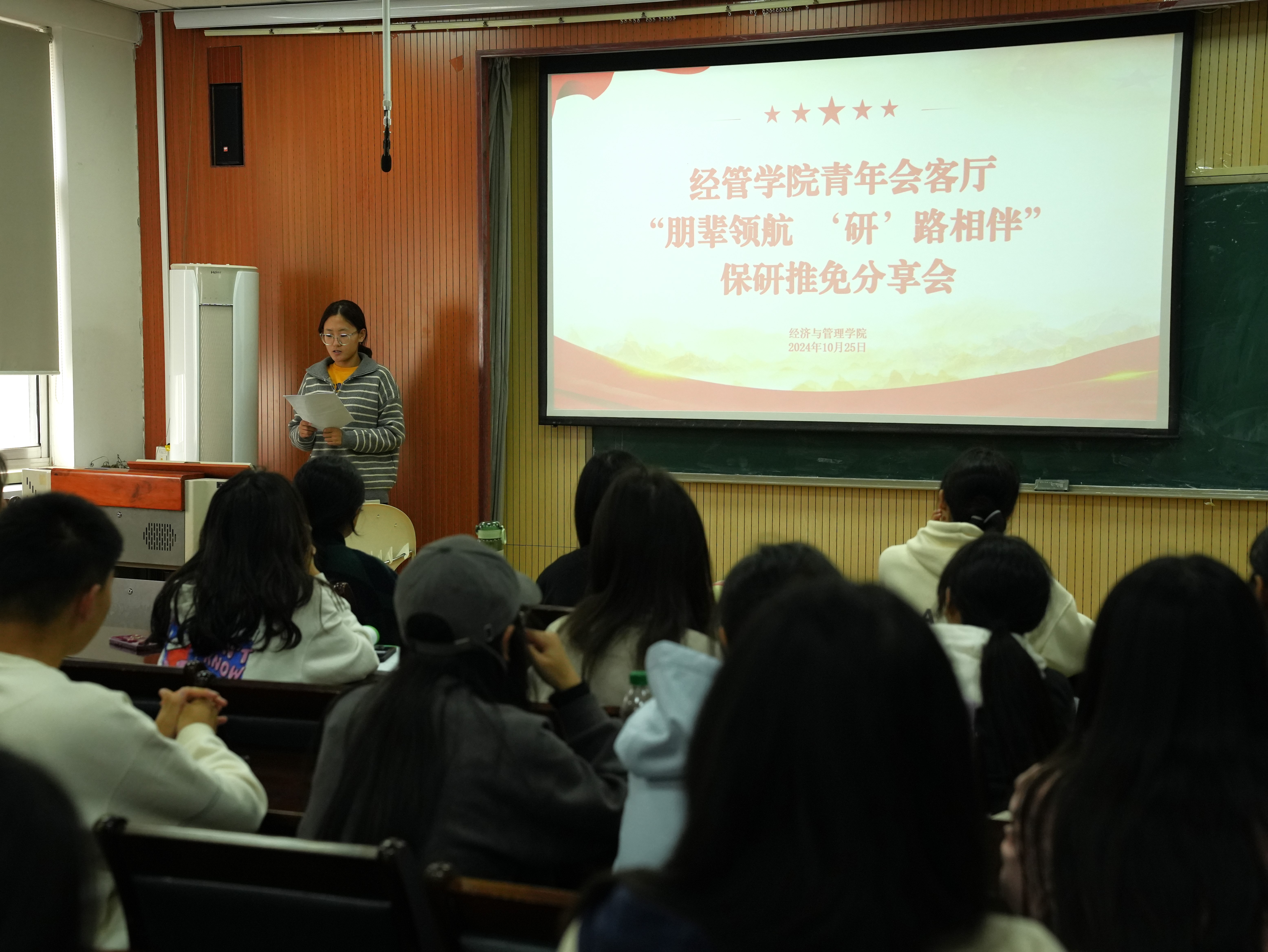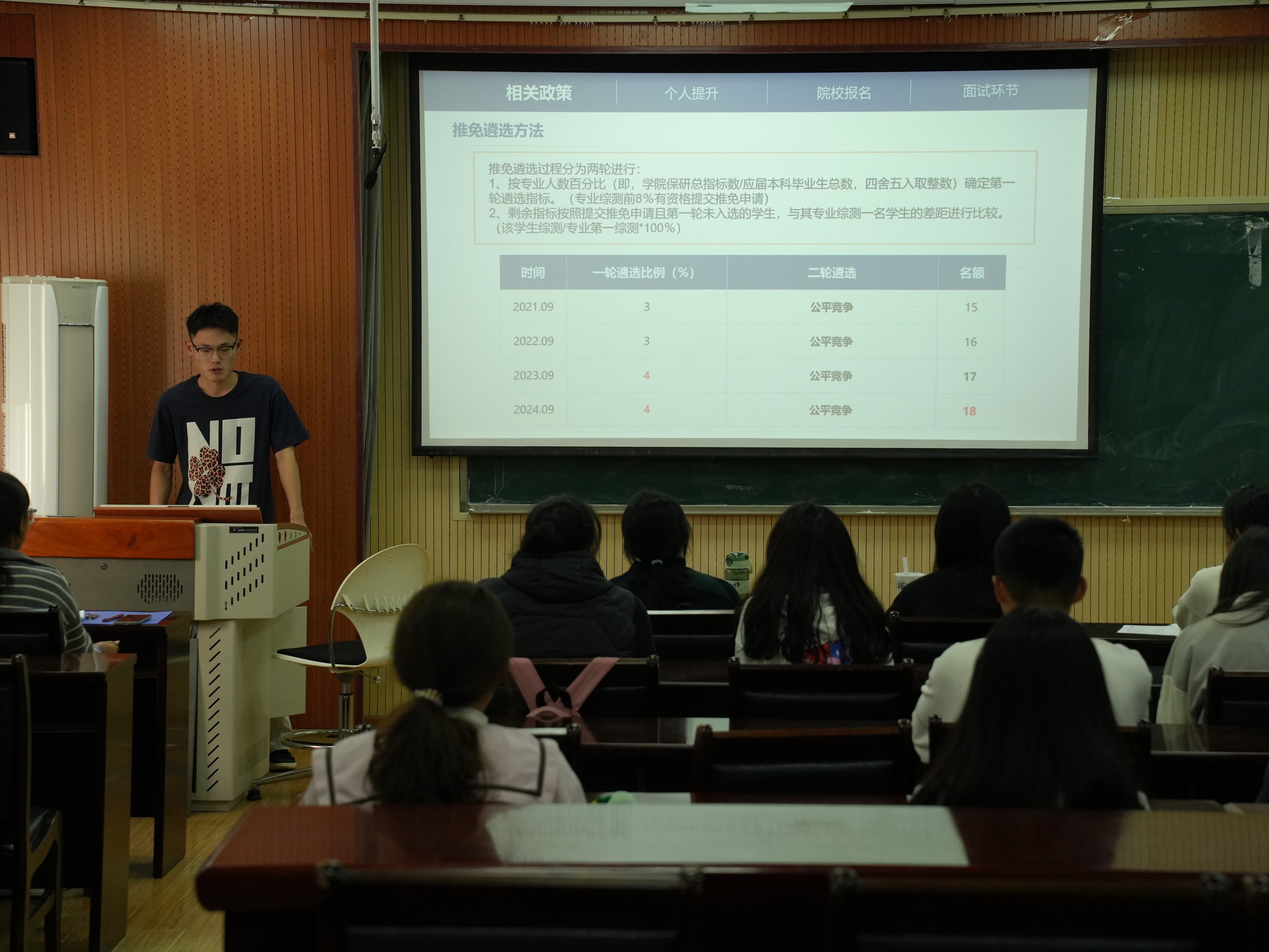 分享会伊始,辅导员郝家玮介绍了本次活动目的、各专业优秀学子以及活动流程,并对保研的重要性和意义进行了简要阐述,同学们兴致高昂,活动氛围浓厚。随后,各专业朋辈分享人分享推免经验。