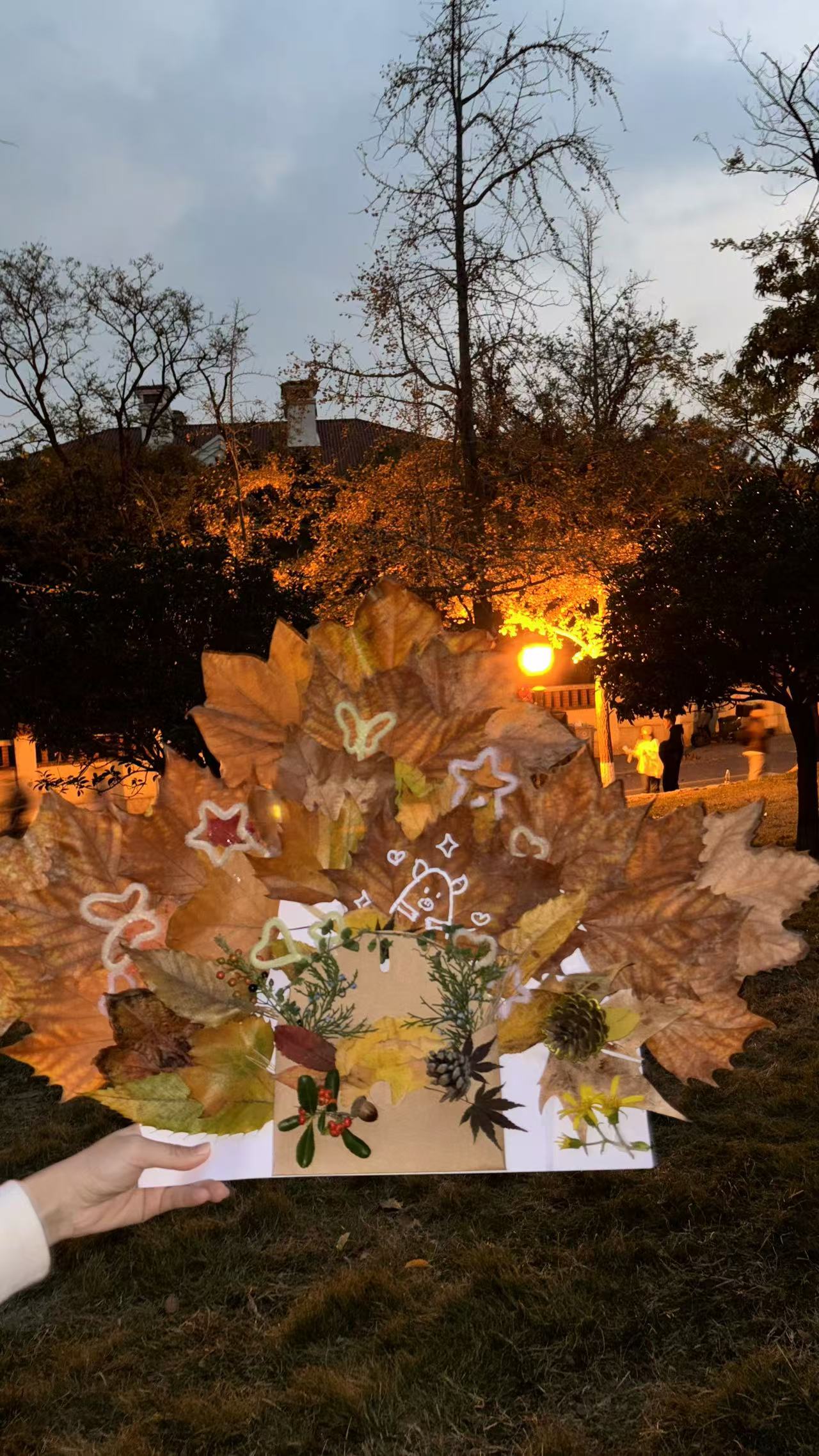 趣赏秋韵,聆听心语。为加强大学生心理健康教育,培育新时代背景下大学生劳动精神,将心理课堂与志愿服务相结合,暖心愿联合新生团支部在八大关街道开展了“落叶绘秋色,暖冬听心语”——“秋冬的心事”园艺贴画活动。志愿者们以小组为单位,按照既定区域有序地展落叶清扫和拾秋活动,将部分树叶制作成树叶书签、创意的拼贴画等装饰品,实现了资源循环利用,巧妙融合了环保与艺术。
