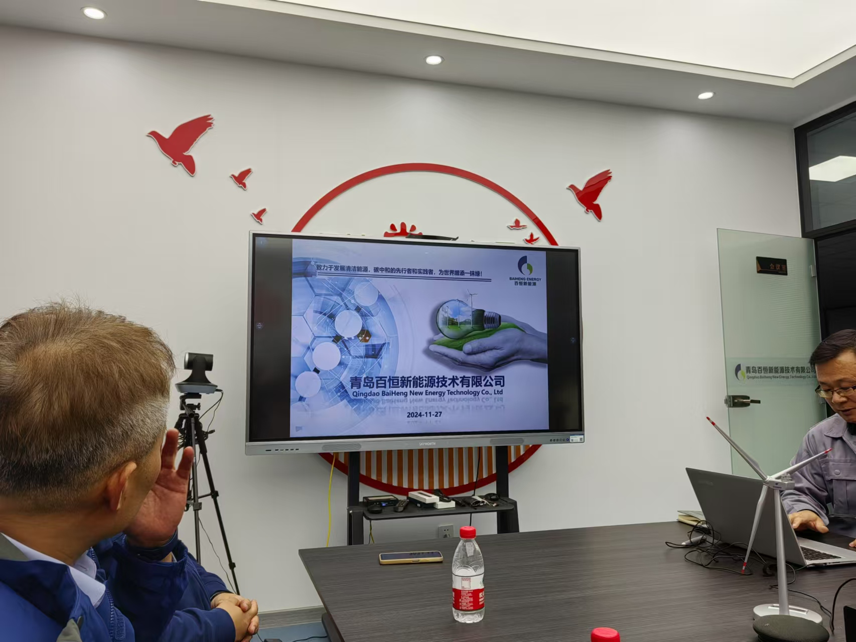 随后,李勋来一行参观了青岛百恒新能源技术有限公司。在企业负责人的陪同下,师生们详细了解了企业的工作环境和文化氛围。企业方详细介绍了公司的发展历程、业务范围以及未来规划,特别是对新能源领域的深入研究和市场前景。无码欧美