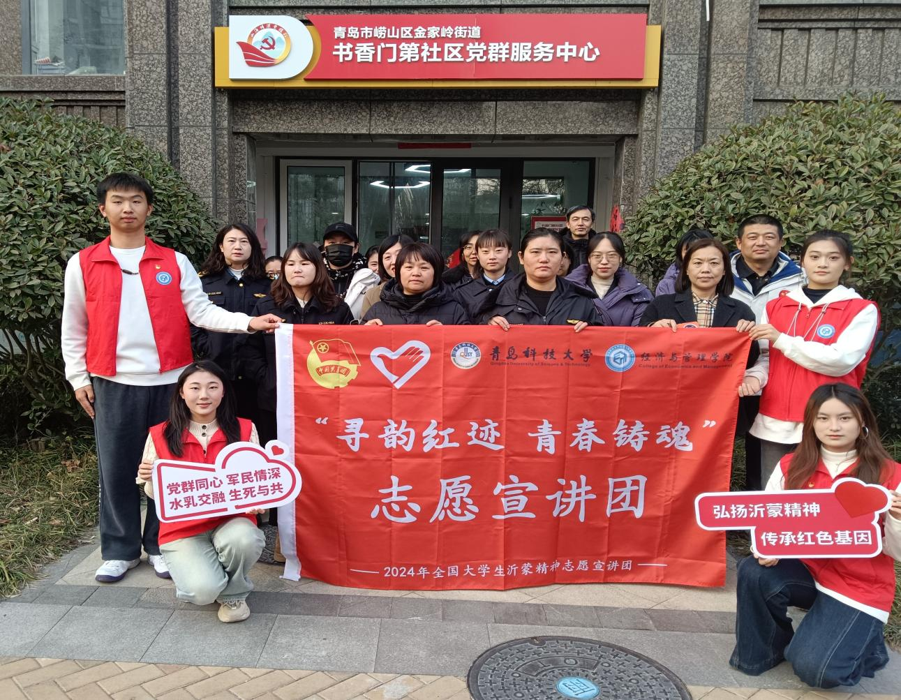 “寻韵红迹,青春铸魂”志愿宣讲团走进青岛市崂山区书香门第社区开展沂蒙精神宣讲暨党史调研活动。