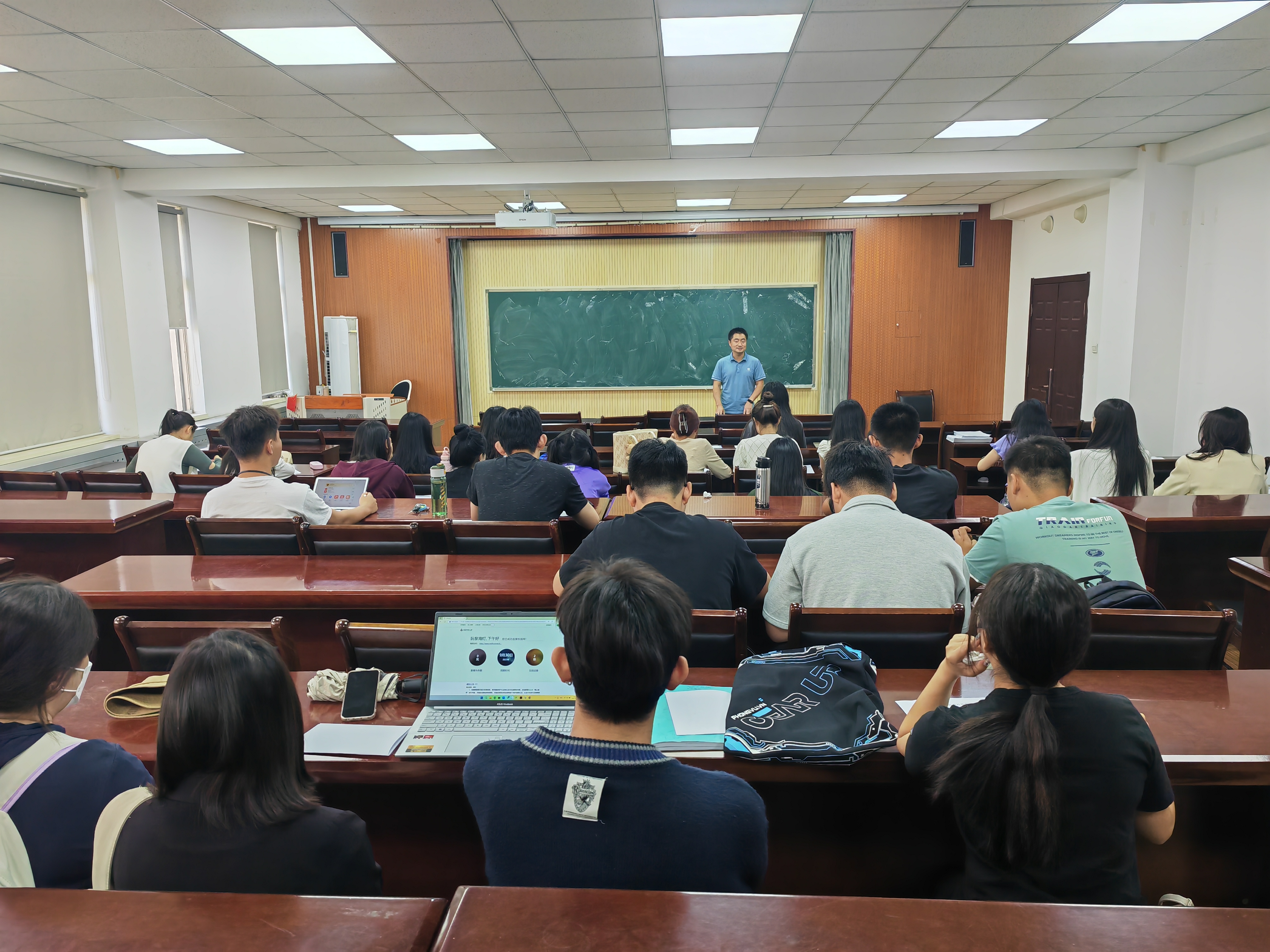 在交流环节,姜延杰和马庆万两名同学围绕当前就业状况、求职经历以及就业期望等方面进行了分享,并建议同学们转换就业观念,调整就业心态,拓宽就业渠道,积极求职应聘,在求职过程中,认真总结就业技巧,提高就业成功率。