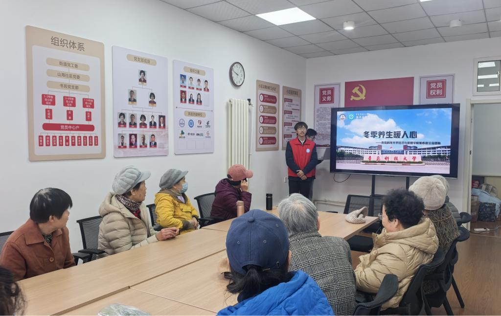 暖心愿公益团队走进青岛市崂山区山海社区开展“暖冬养生行,健康伴你行”养生科普志愿实践活动,将防寒保暖、饮食调理、慢病预防等干货内容与互动实操相结合,为社区居民送上一份贴心的“冬季健康指南”。