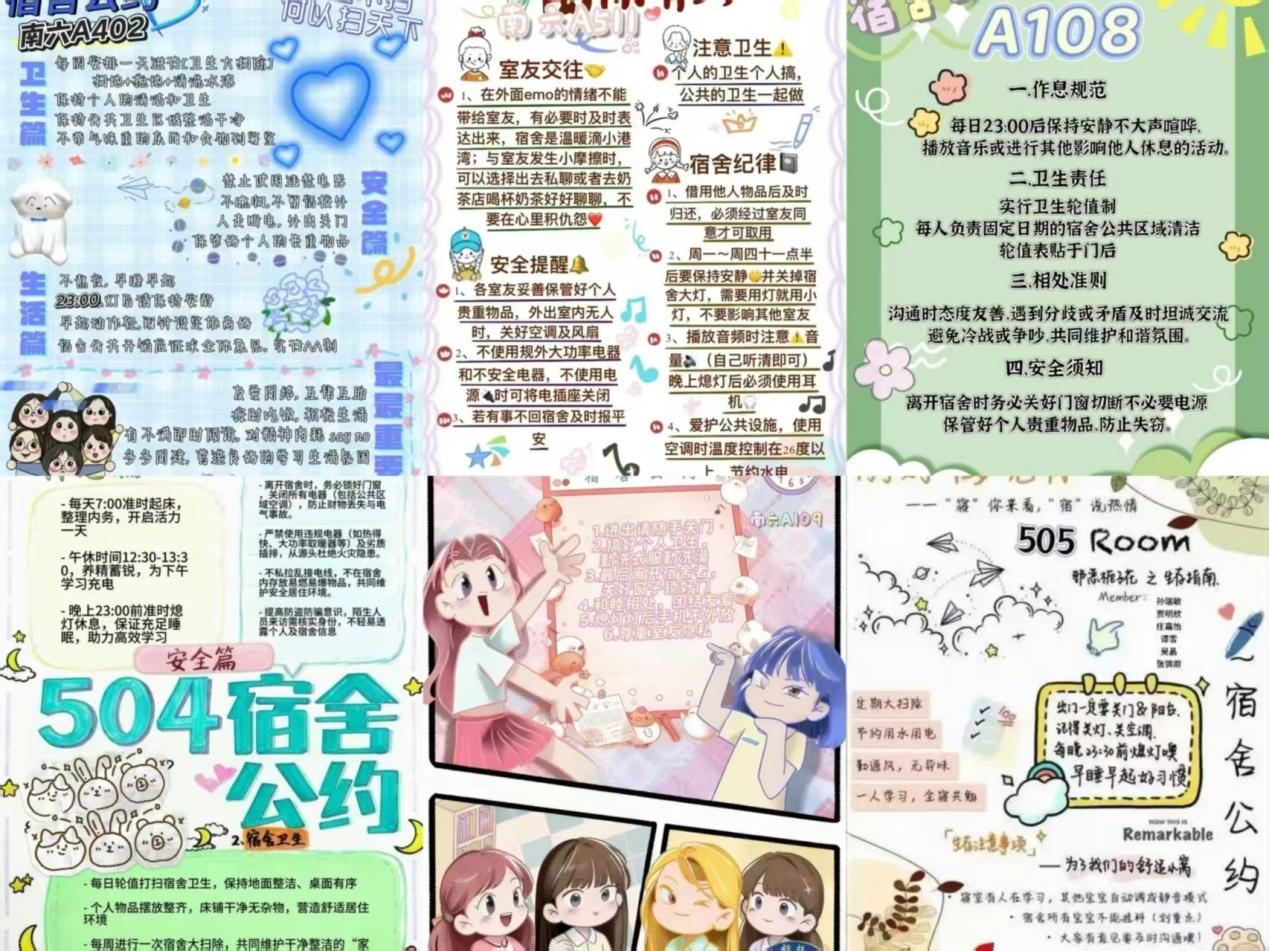 以宿舍为阵地,开展“文明‘寓’见,共筑暖家”宿舍文明公约与微视频创作活动。活动以多元创作形式凝聚文明共识,从规范用电、卫生保持到尊重个人隐私,细致入微构建宿舍文明准则,共同维持宿舍文明新秩序。多个宿舍通过微视频记录生活点滴,展现经管学子活力风貌。这些举措让宿舍成为涵养品格、凝聚情谊的成长沃土,推动校园生活文化建设走深走实。
