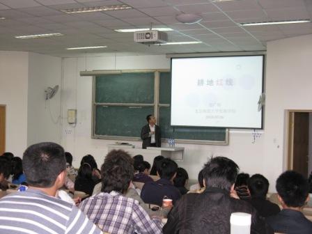学术论坛,为学生们做了一场题为“耕地红线”的学术报告。
