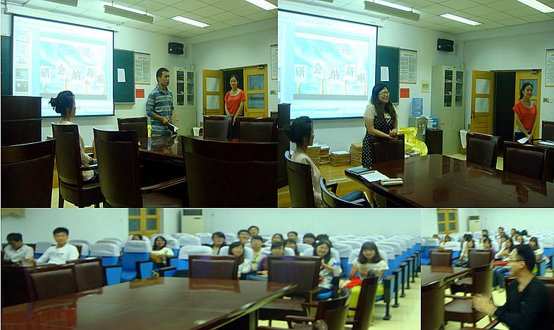 在纳新大会正式开始之前,研究生会主席、副主席、各部门代表以及2012级研究生新同学都已入座。多媒体屏幕上展示着研究生会在过去一段时间内组织的各项活动的照片,大家一边观看着一边热情地讨论着。期待已久的时刻终于来到,会议正式开始之后,经管无码欧美