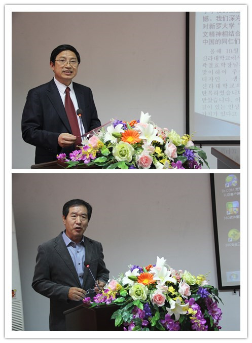 图:我院李立院长致欢迎辞、新罗大学黄昌润教授致开幕辞