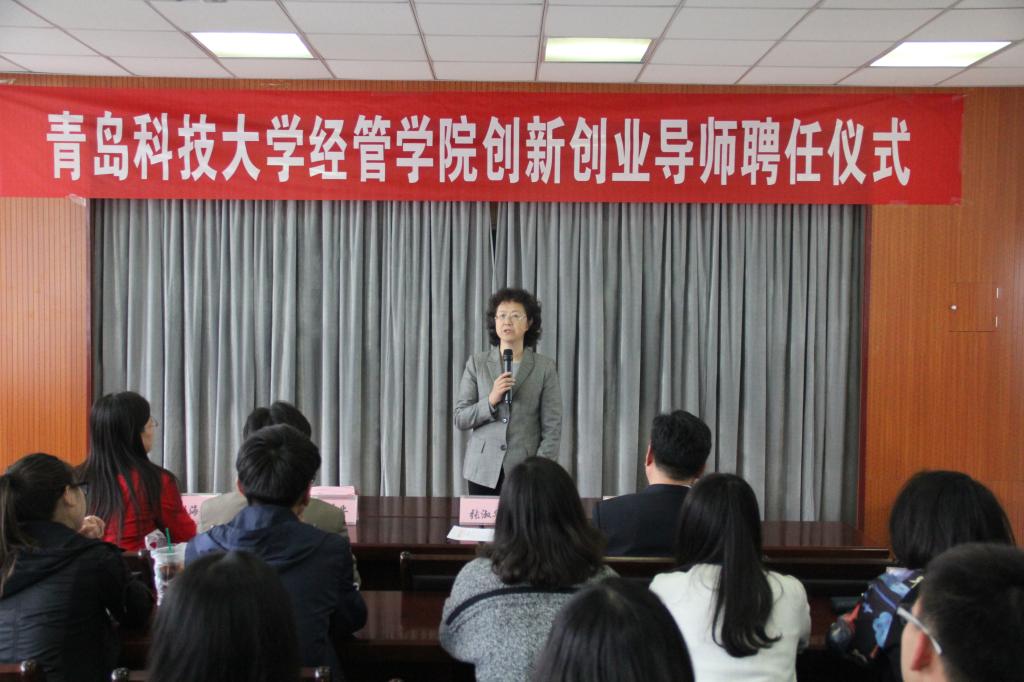 张淑华在聘任仪式上致辞,对各位导师莅临青岛科技大学表示热烈欢迎,希望各位导师在“大众创业万众创新”的时代形势下,结合自身工作经验帮助学生认识自己、认识职业、认识社会,科学合理做好职业生涯规划,为社会发展培养更多、更优秀的人才。