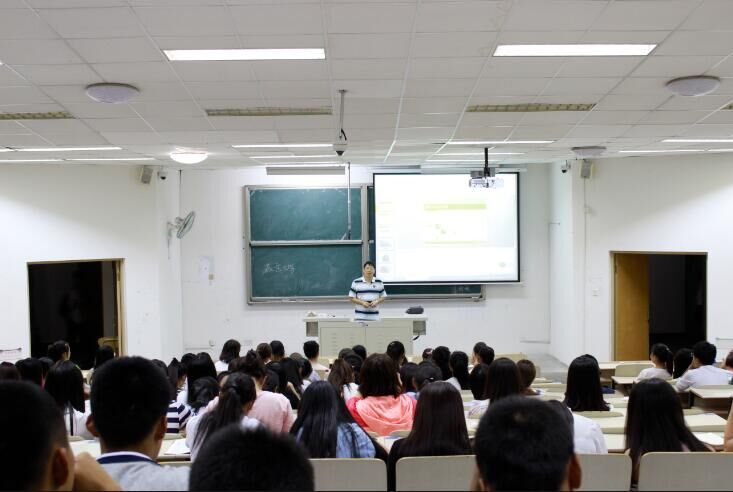 MBA教育中心办公室主任刘强、13级辅导员老师李雯雯、15级辅导员老师王辰主讲,全体大一新生聆听了本次讲座。