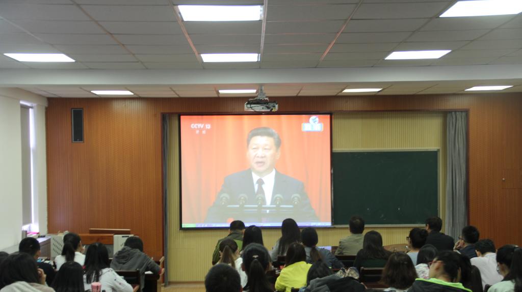 党政领导、行政人员、教师党员代表、部分学生党员、入党积极分子代表、学生代表等90余人准时收看“纪念红军长征胜利80周年大会”现场直播。