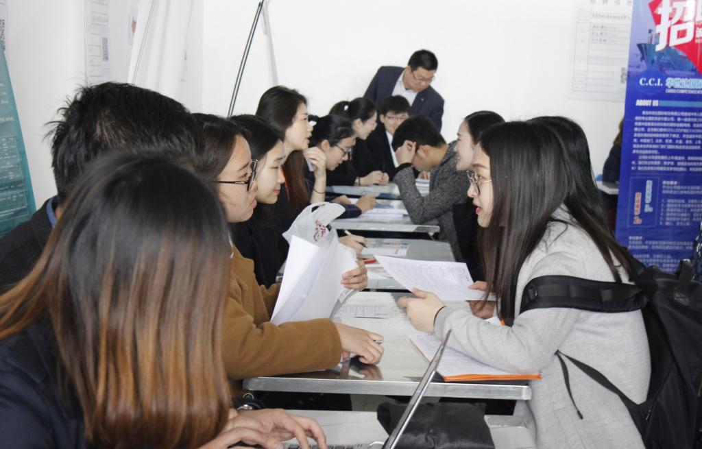 “逐梦今朝、职在必得”2017届毕业生专场招聘会在崂山校区北苑餐厅三楼举行。