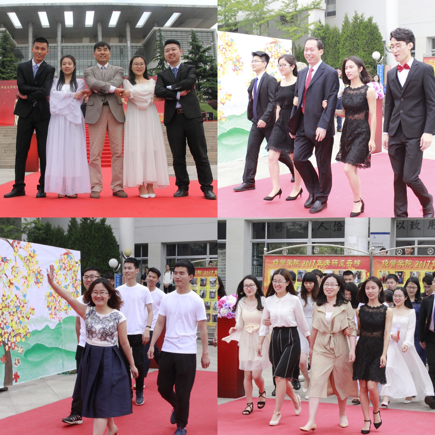 开幕式伊始,院长王志宪教授作了题为《五有青春,吾友再会》的毕业季致辞,教师代表接受毕业生献花并发表毕业寄语;四名学生代表分别从学习楷模、创业达人、科技创新和志愿服务方面进行了我与科大的四年主题演讲,21名省级优秀毕业生进行了《请老师们放心》诗朗诵,表达对老师们四年来辛勤培育的感恩对美好祝愿。接下来,毕业生们盛装出场,依次走过红毯,在签名墙上留下名字,纪念在科大的青春,展现了经管学子有活力、有特色的积极向上的精神风貌。