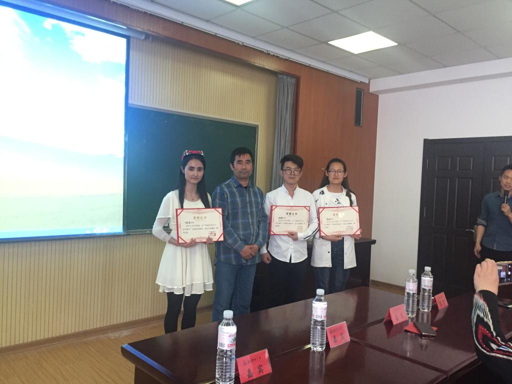 在主持人简短有力的开场白后,回族、蒙古族及维吾尔族同学依次登场,分别从建筑特点、服装饰品、饮食习俗、宗教习俗、传统节日等方面逐个展开讲解,并认真解答了同学们提出的相关问题,讲座现场气氛融洽,充满欢声笑语。维吾尔族阿依夏同学应邀为在场的师生们表演了一段民族气息浓厚的维吾尔族舞蹈,引得全场掌声不断。随后,哈萨克族江别克老师围绕“增强中华民族共同体意识,促进中华民族大团结”的主题,结合哈萨克族风俗民情,深入浅出地阐释了加强中华民族大团结的意义,并希望同学们能在学习生活中增强文化认同,团结互助,共同进步。最后,江别克和姑再努尔老师为三位同学颁发证书并合影留念。