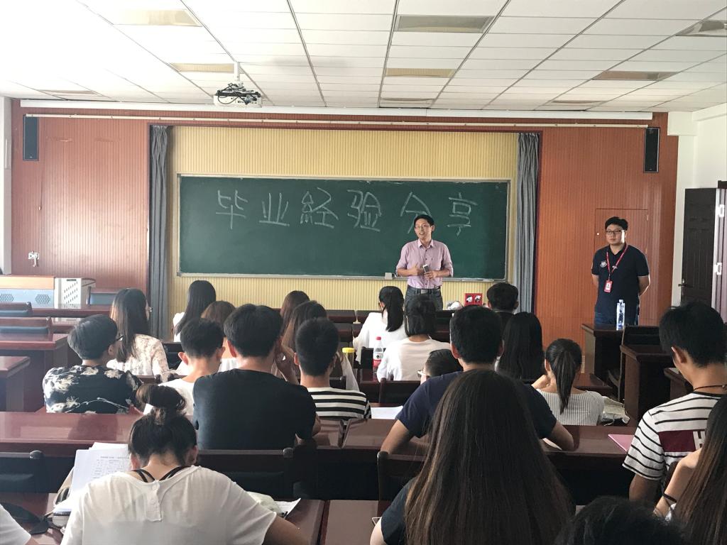 物流管理专业于经管楼505室举行毕业经验分享会。出席本次分享会的嘉宾有物流管理系主任吴成锋老师、物流管理系副主任索琪老师、京东山东人力资源部经理、2009级物流管理专业优秀毕业生毕德超以及2014级物流管理专业全体学生。