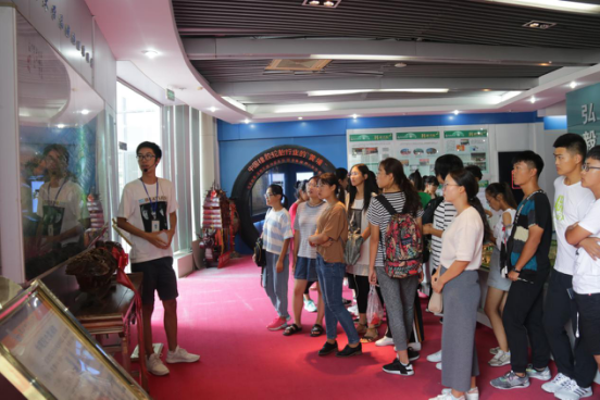 时期学校各项工作长足发展的情况,科学管理,科研工作,教学工作,国际交流,团学活动,校园文明评估,美校并入,建设新校区等内容;第四部分是学校进入青岛科技大学新时期以来,各方面取得的成就,谱写出了新时代的“盛世华章”。同学们在校史馆讲解员的带领下,了解了每张照片背后蕴藏的故事。四个展区逐一走下来,同学们对青岛科技大学的整个发展历程也有了更加深入的了解,他们的脸上也流露出了对青科的敬仰,自豪之情。