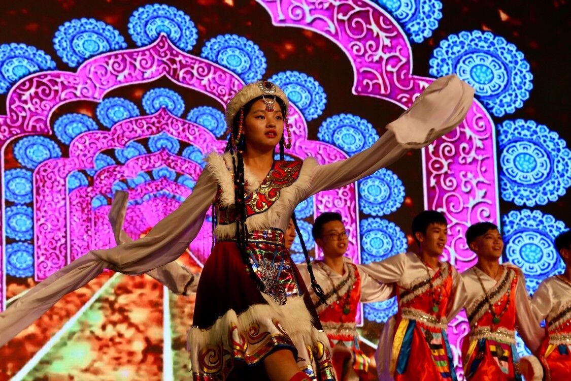 民族舞蹈《民族欢歌》聚集了来自五湖四海的少数民族同学,逐一呈现了壮族、朝鲜族、藏族、蒙古族和维吾尔族五个少数民族热情奔放的舞蹈,用自己绚丽的舞姿展现了自己的民族丰富多彩的文化,大大弘扬了民族精神和时代精神,体现出经管学子昂扬向上的精神风貌和对传承优秀传统文化的使命担当。
