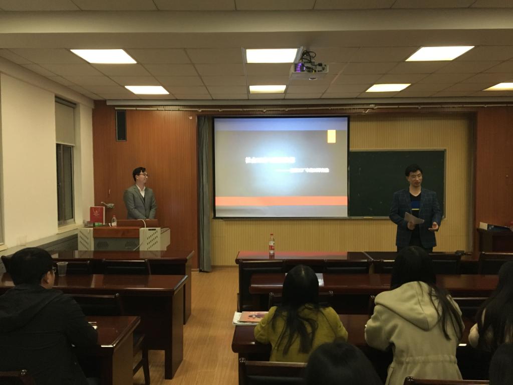 讲座上,杨友才首先对王晟哲进行了介绍,德克萨斯州学校(UNIVERSITY OF TEXAS AT DALLAS)PHD,博士毕业后进入碧桂园集团“未来领袖”计划,先后从事战略研究、社区互联网方面研究,担任主席秘书等职务,目前是两家公司予升科技和予知教育的创始人,研究方向为实验经济学(行为经济学方向)、空间计量经济学。接着,王晟哲从自己的所写论文入手,通过分析论文中建立的各种数学模型为同学们引入计量经济学方面的知识。他强调空间计量最需要解决的关键问题为准确估计各种参数,同时该问题在实际科研计算中也是最难做到的。