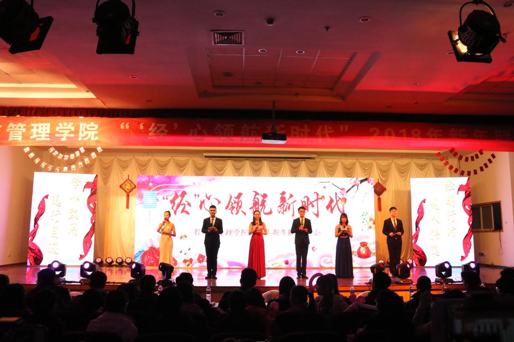 2018年新年联欢晚会于崂山校区第二报告厅成功举行。校工会主席郭曰铎、学生处副处长周宪锋、教务处副处长王泽鹏、保卫处副处长严增兴、团委副书记杨小明、经管无码欧美