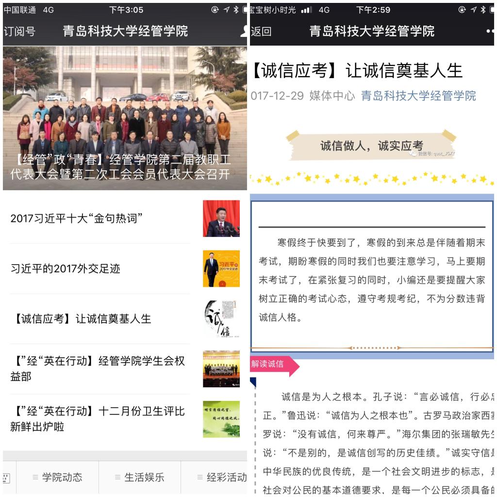 微信公众号专题推送和校园悬挂横幅的形式,营造诚信教育的良好氛围,增强教育的生动性和实效性。