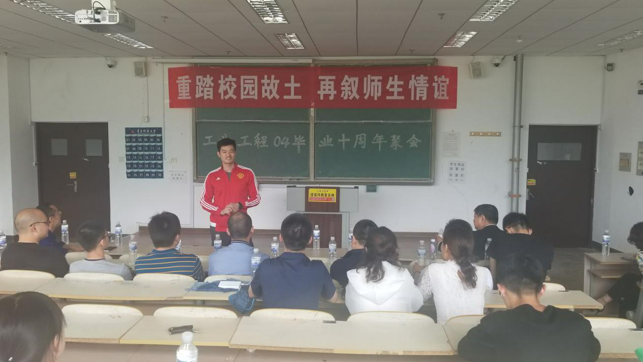 会议伊始,孙在东老师和赵慧娟老师分别就重踏校园的04级学长学姐发表讲话。随后,学长学姐分别就毕业后的十年发展做经验交流。工业041班班长孙超率先进行经验分享,分享了他对工业工程专业的理解,他说“工业工程之魂即提高效率”。