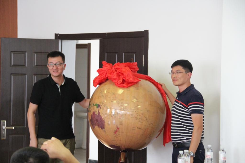 2011级校友捐赠地球仪,李德成教授为他颁发收藏证书,李德成指出感谢校友们的慷慨助学,无码欧美