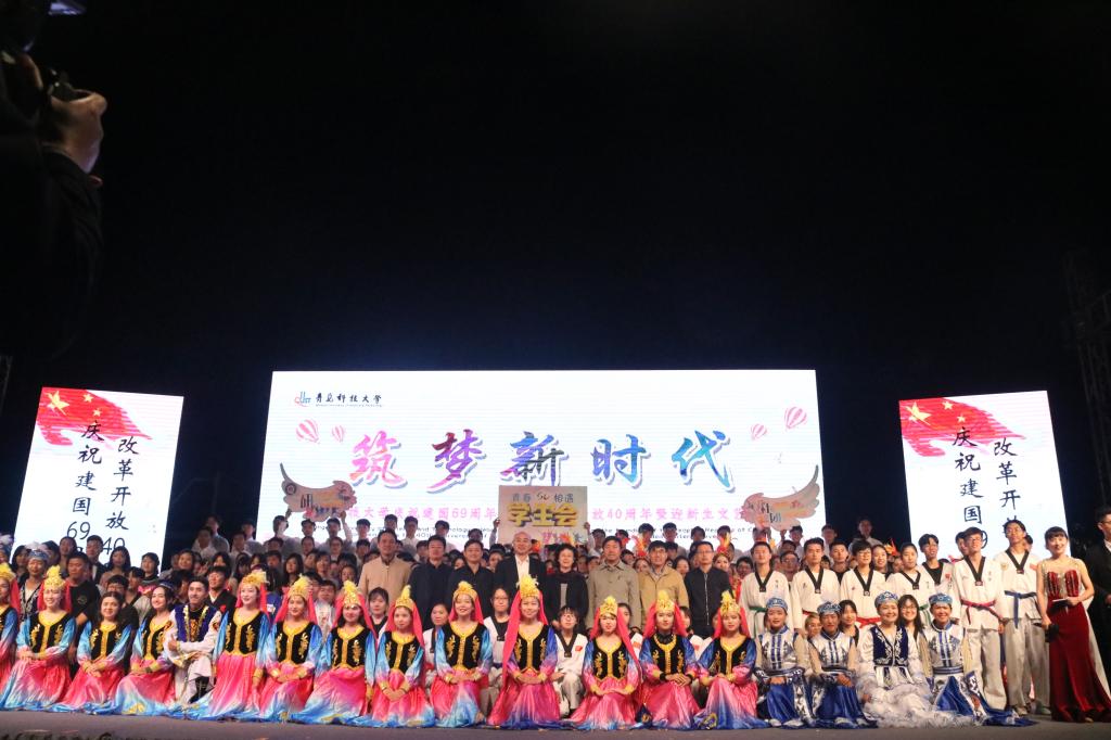 为庆祝中华人民共和国成立69周年,庆祝改革开放四十周年,10月12日晚,青岛科技大学“筑梦新时代”迎新文艺晚会于崂山校区南苑操场隆重举行。晚会共分为三个篇章——改革路、新时代、青春志,经管无码欧美