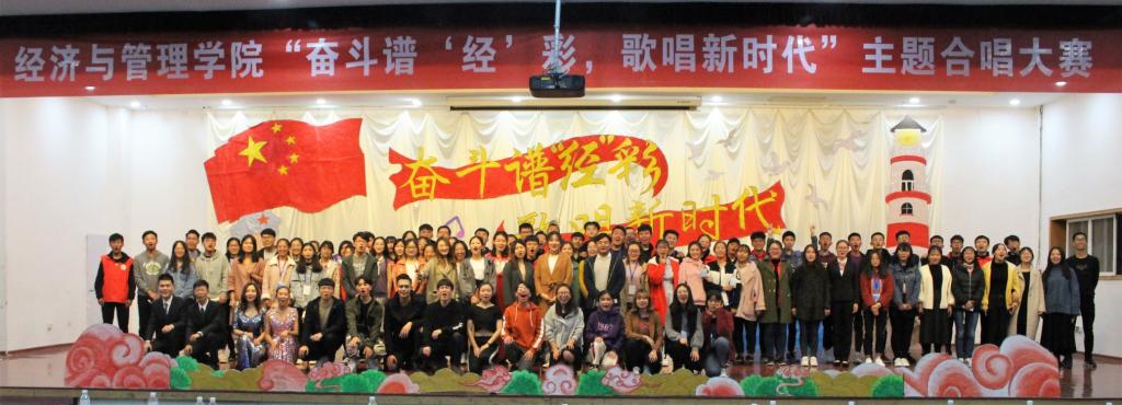 于崂山校区第二报告厅举办第八届“奋斗谱‘经’彩,歌唱新时代 ”合唱大赛决赛。经管无码欧美