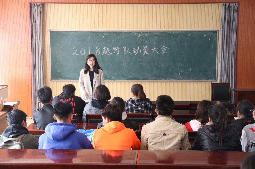 在经管楼419室召开2018越野队运动员大会。分团委老师王聪、张晓帆,体育部工作人员及35名越野队运动员参加了会议。